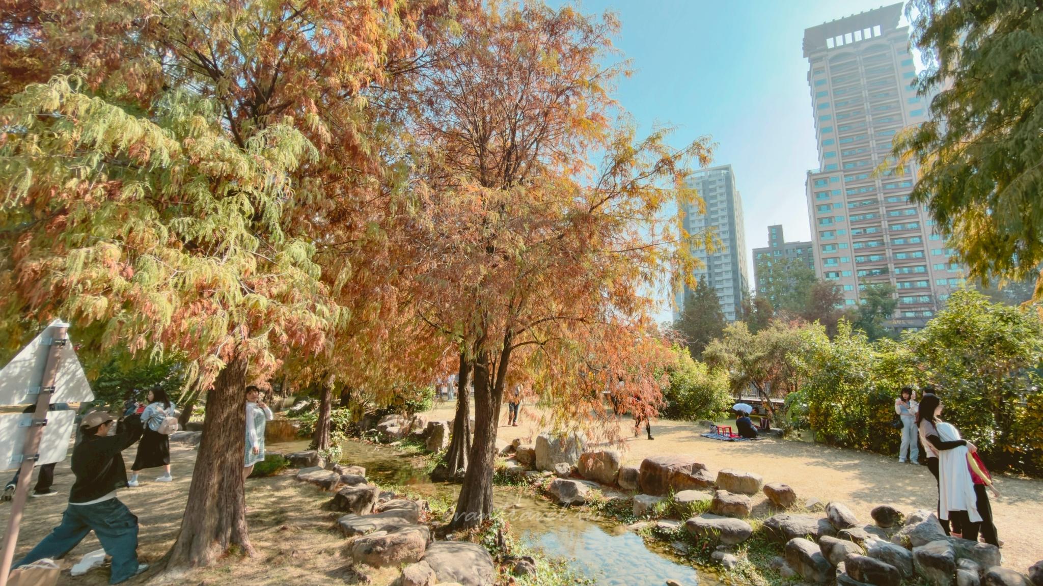 每年到了冬季(12月至隔年1月),這裡最受矚目的主角絕對是環繞在湖畔的落羽松。隨著氣溫轉涼,羽狀葉片由綠轉黃、再由黃轉紅,倒映在水面上的景色充滿了異國風情。雖然現在已經是一月中下旬(我是在 2026/1/18 造訪),落羽松的季節已接近尾聲,但現場依然能捕捉到那抹迷人的焦糖色調。今天就帶大家來逛逛這座城市森林,順便推薦一個逛完公園後的絕佳消暑行程!
