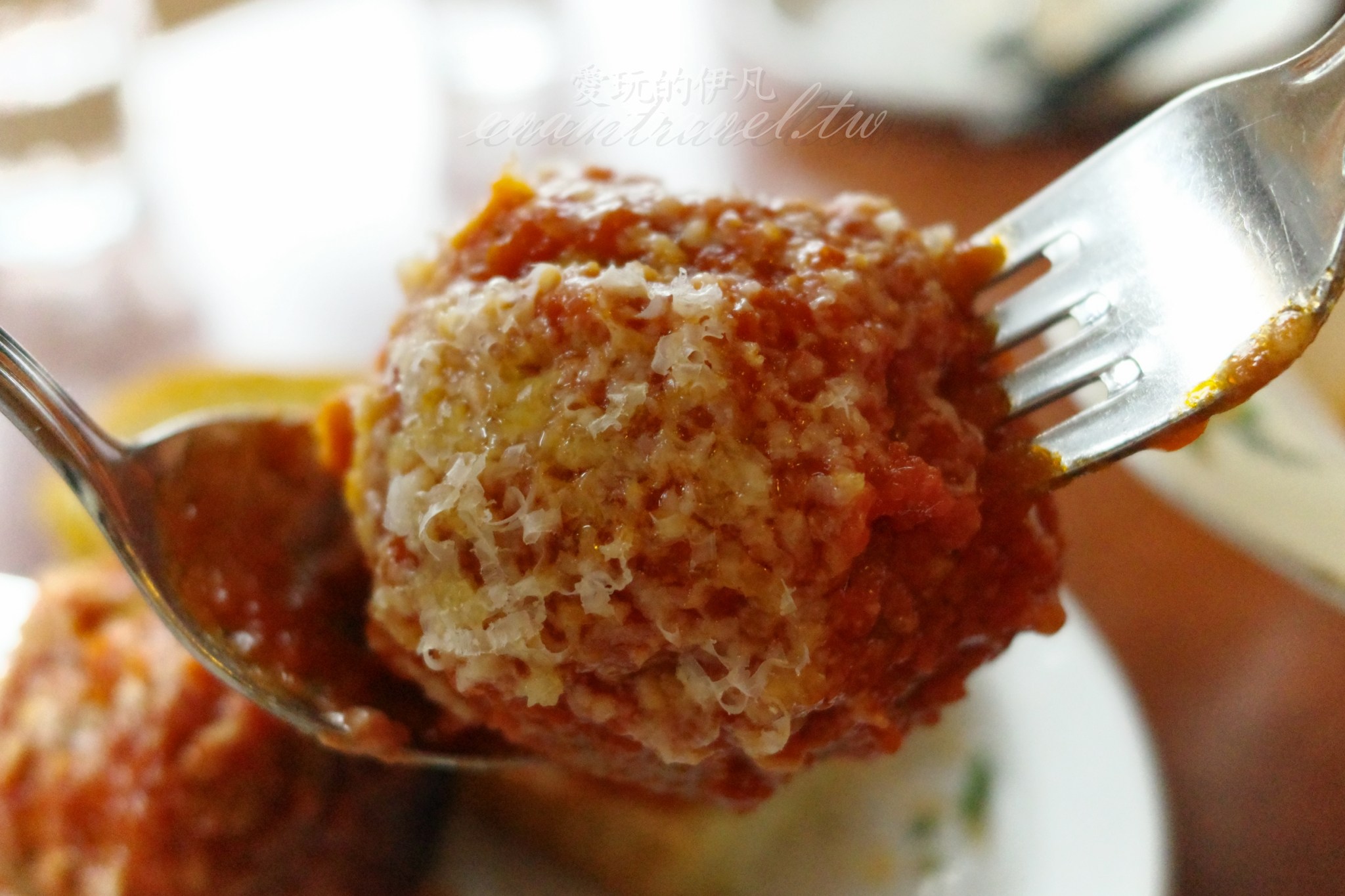 這份肉丸份量十足,浸泡在濃郁的番茄醬汁中,不過個人心得是肉丸調味蠻鹹的。我非常建議大家一定要像我一樣額外加點 Extra Focaccia ($4) 佛卡夏麵包,用柔軟紮實的麵包沾裹醬汁並配著肉丸吃,鹹甜平衡後才是這道菜的最高境界。