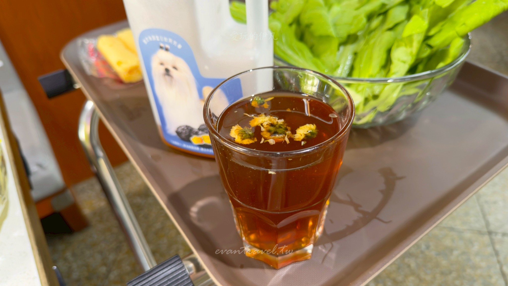 吃火鍋一定要配這瓶印有可愛馬爾濟斯狗狗的白菊烏梅湯。喝起來除了烏梅的酸甜解膩,還多了淡雅的菊花清香,杯底甚至能看見整朵菊花瓣,冰涼清爽感能瞬間重啟味蕾。