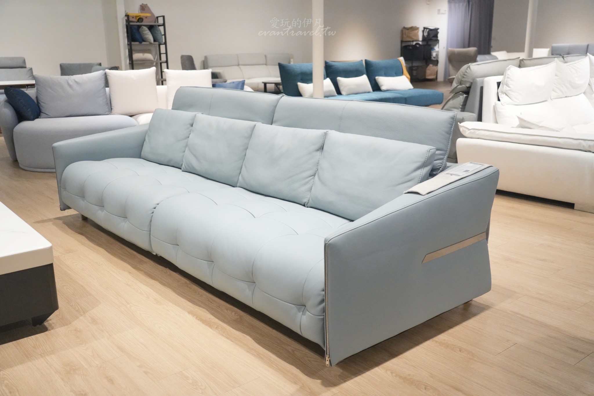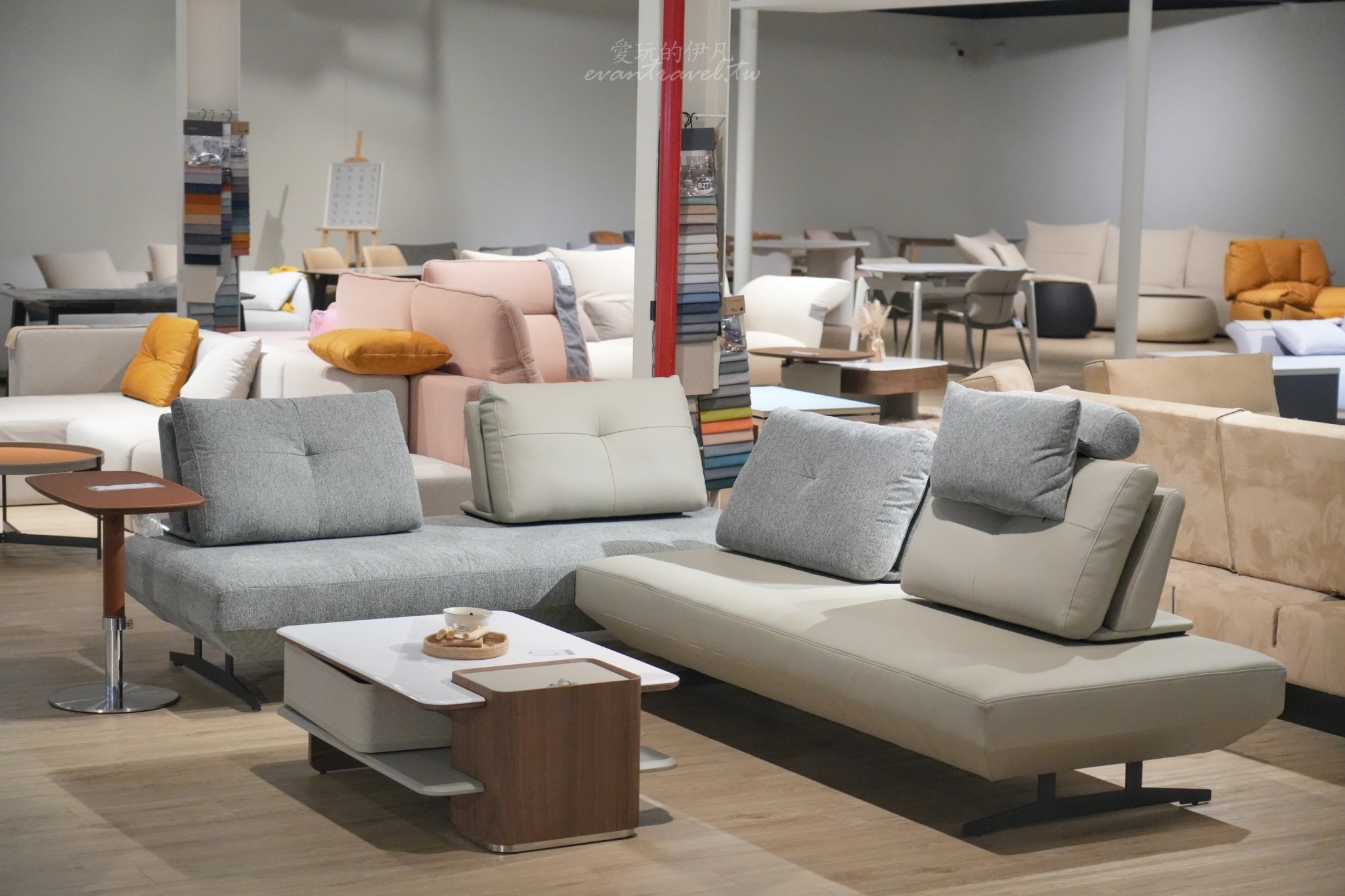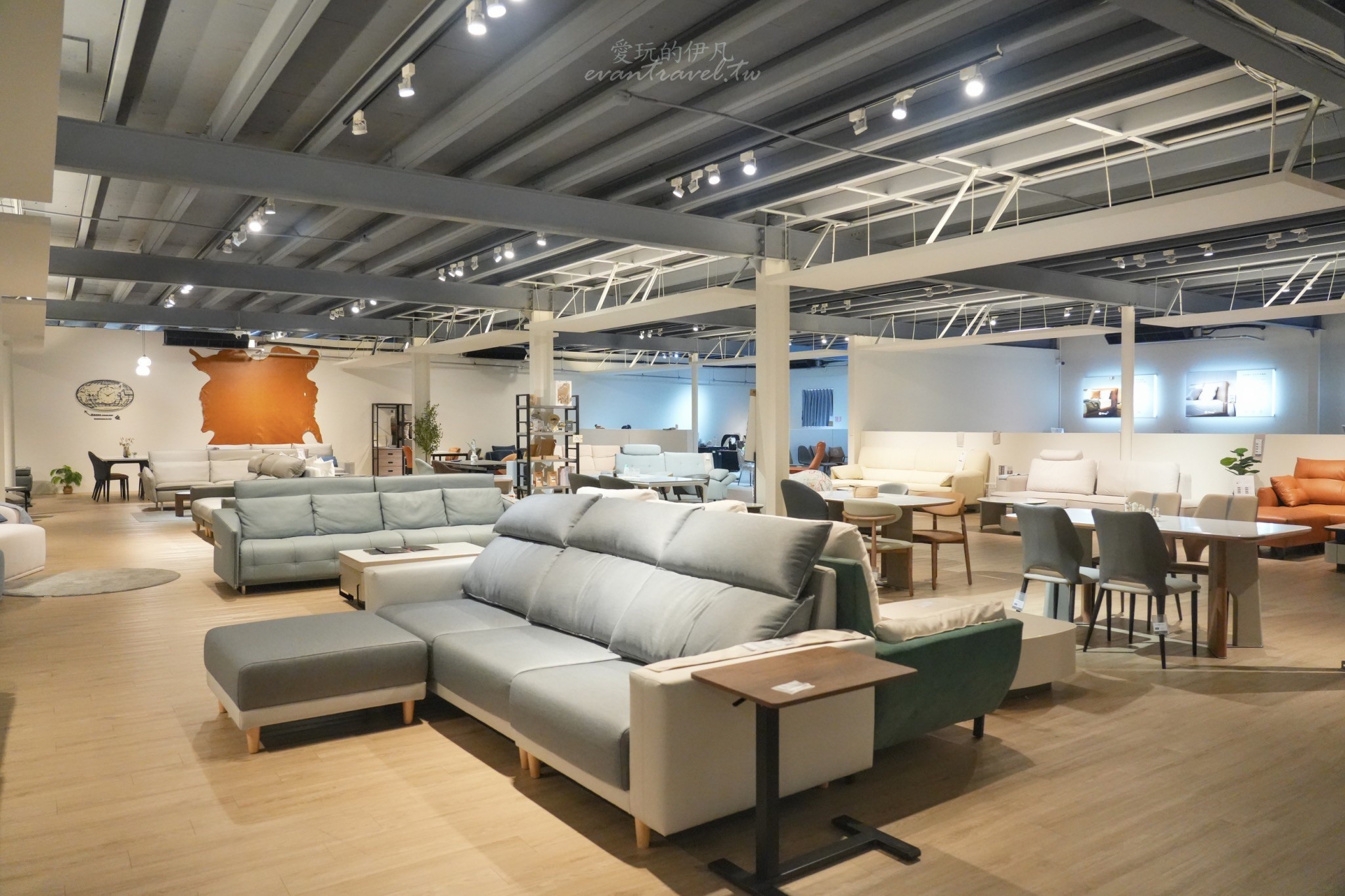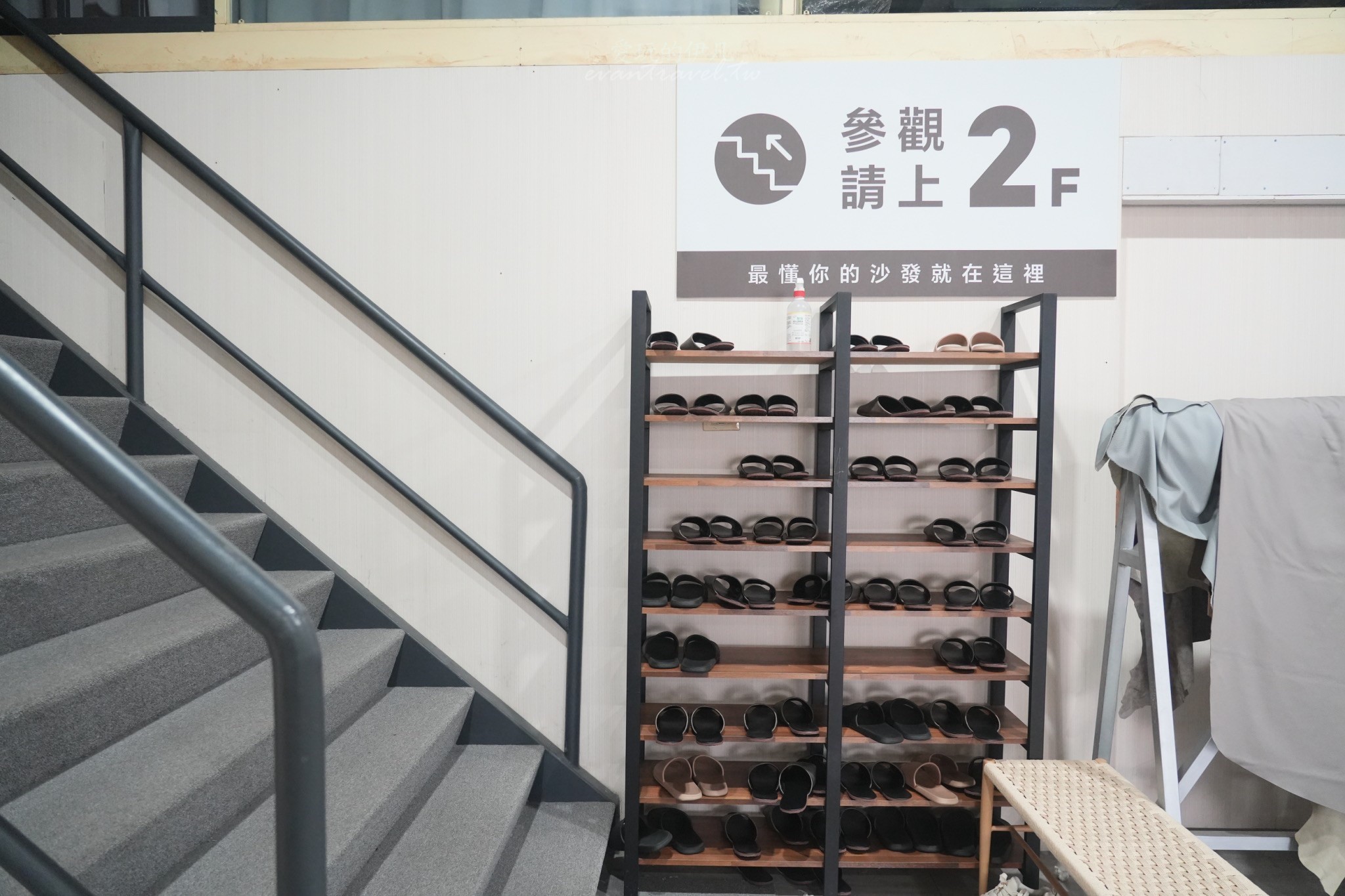 最讓我驚豔的是一樓工廠製作過程公開透明,還特別設置了「結構展示區」,將沙發的剖面直接展示出來。這就像我看餐廳會注重食材來源一樣,買沙發當然要知道裡面包的是什麼。在這裡,台灣師傅使用的實木骨架、高密度泡棉都一覽無遺,製作流程透明化,讓人買得非常安心。