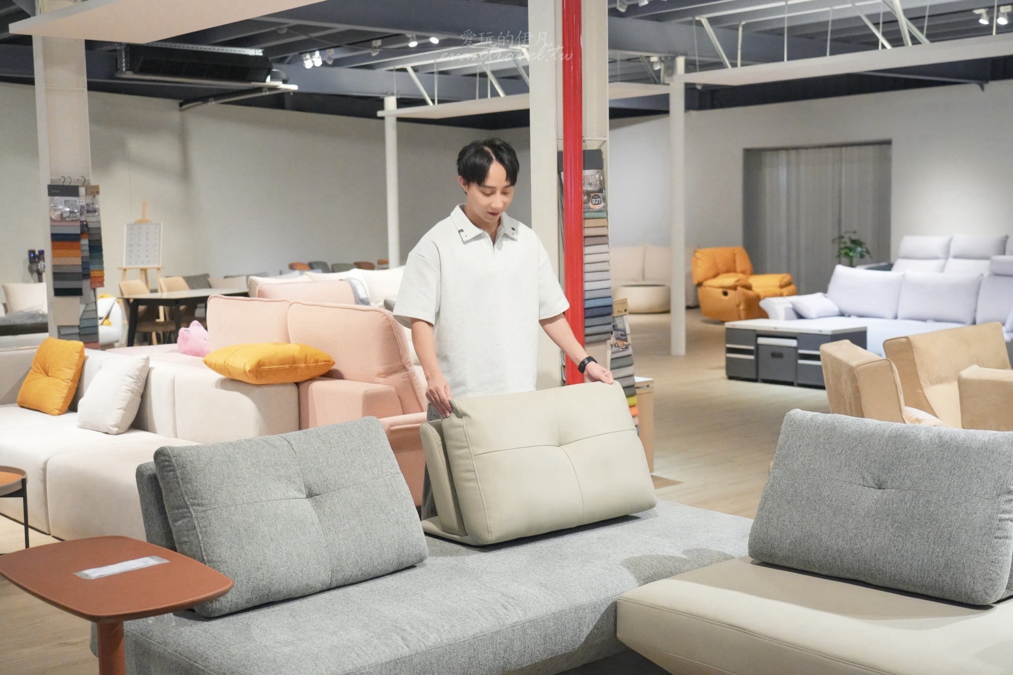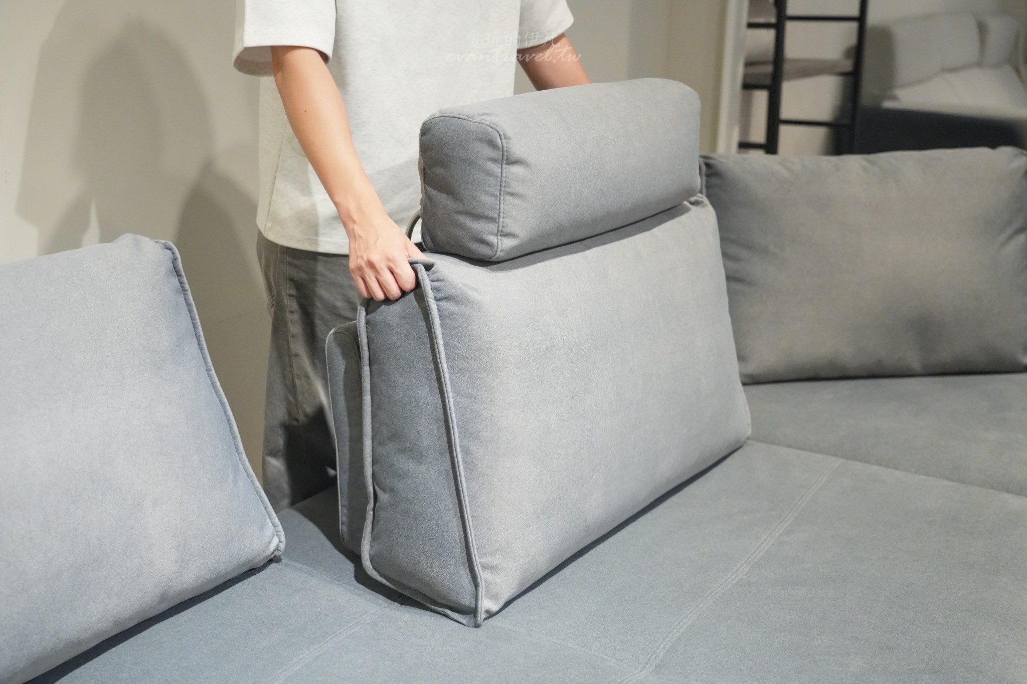 最讓我驚喜的是,它的連背墊、頭枕都可以自由拆下,一秒就能變身成一張舒適的單人床! 這對於偶爾有朋友來家裡借宿,或是像我在客廳剪片累了想直接小睡一下,都超級方便。而且它可以跳色、跳材質自由選,就像是在規劃自由行一樣,完全可以依照你的喜好來客製化。