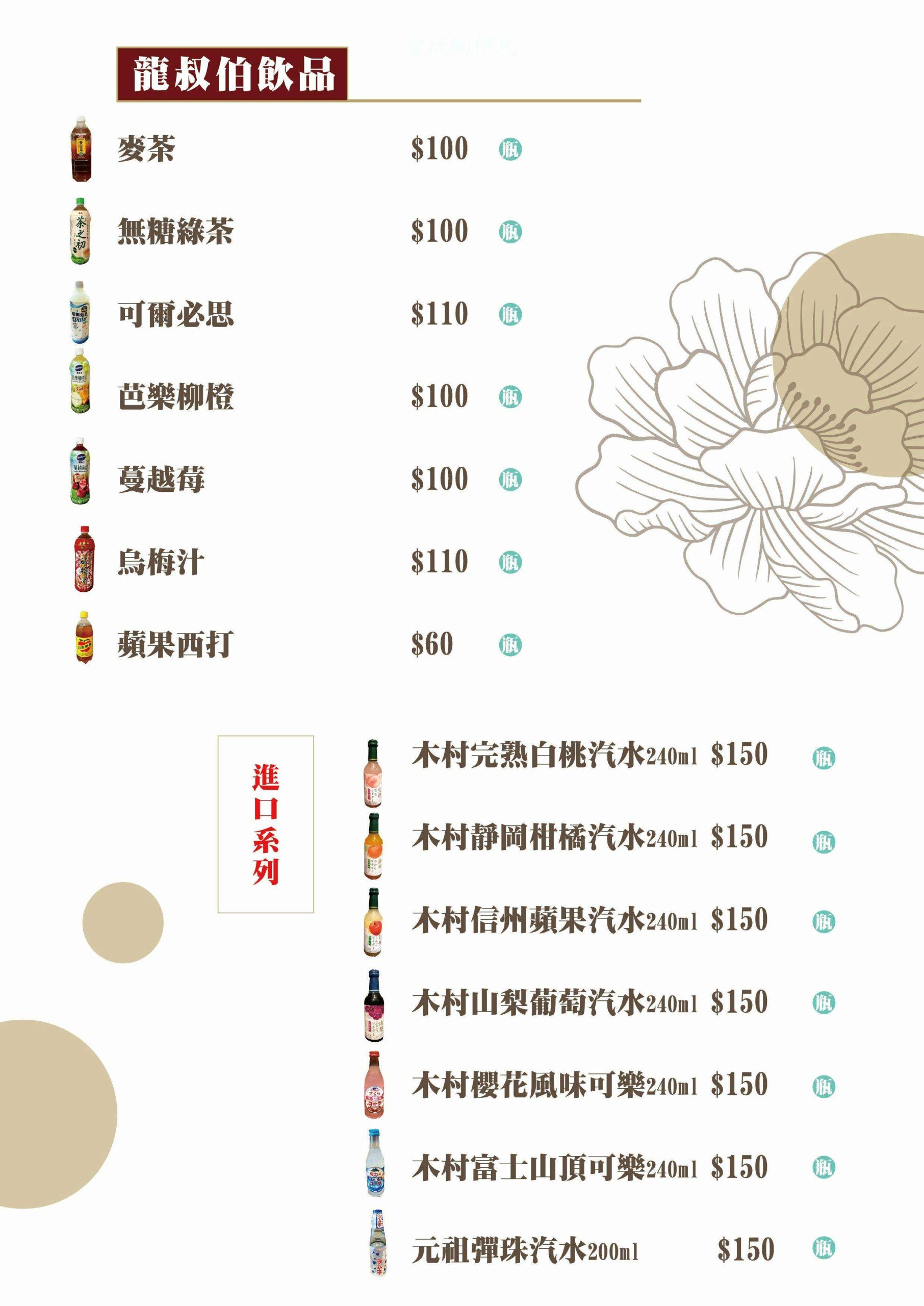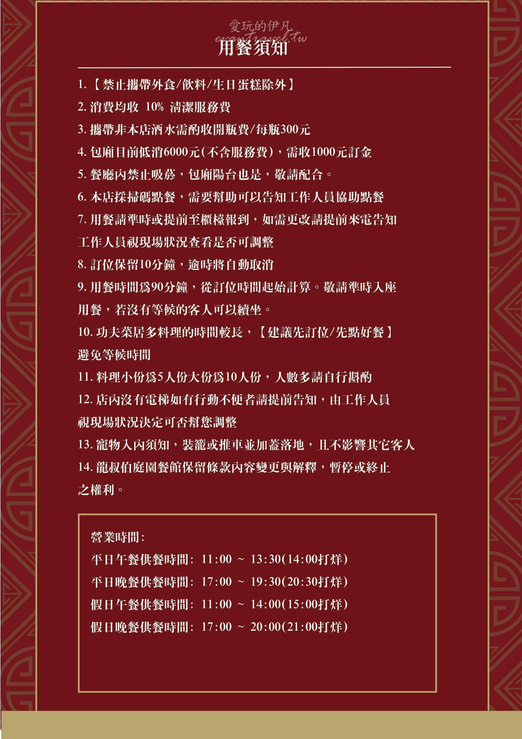 龍叔伯庭園餐館主打的是「客家風味 × 私房台菜 ×創意料理」的組合。店內菜色琳瑯滿目、有單點也有桌菜套餐,適合小家庭或大團聚餐。