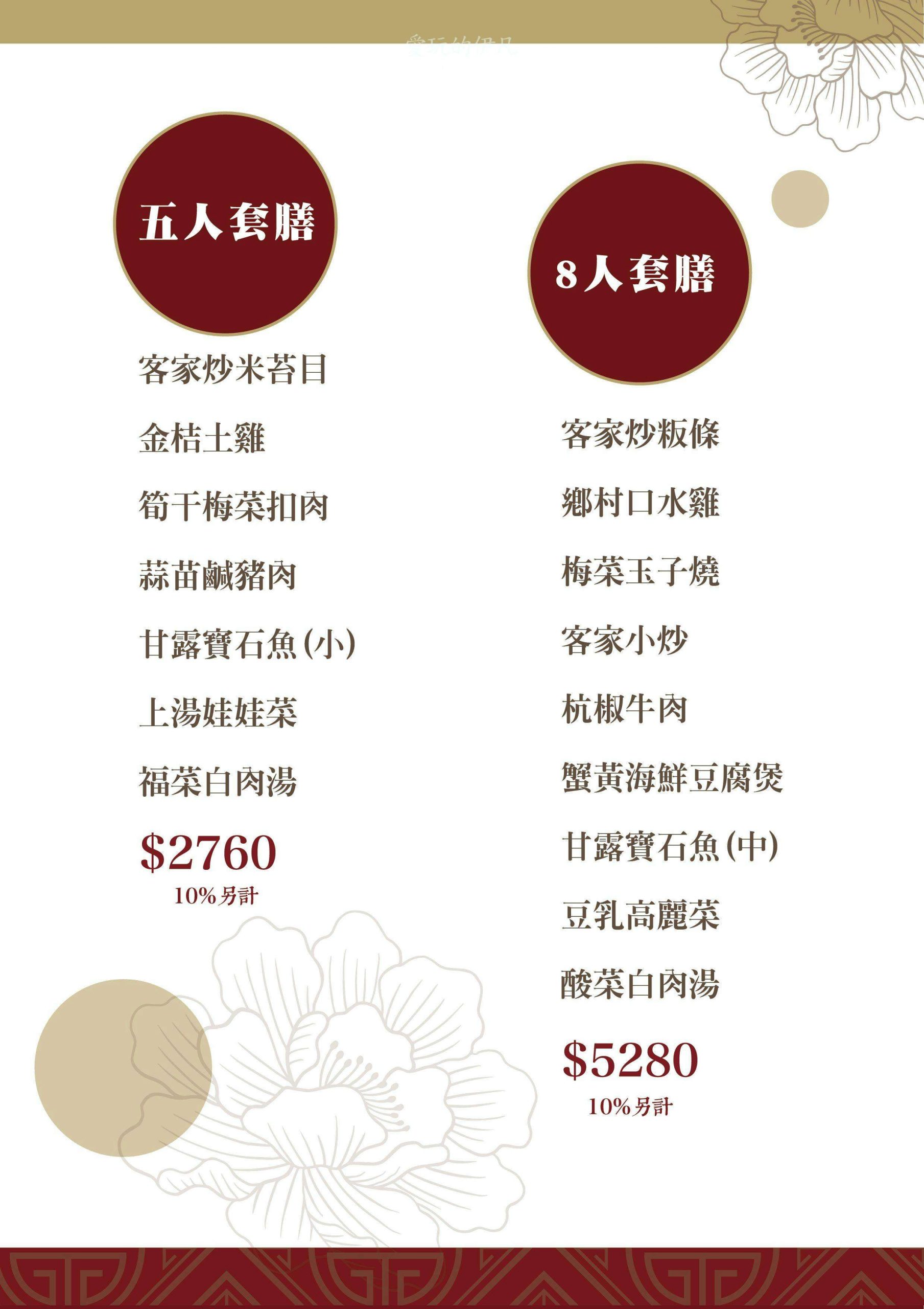 從菜單中可見,經典客家菜如炒米苔目、鹹豬肉、梅菜扣肉皆有出現,用料扎實、調味具在地味道,同時餐廳也不吝將創意引入傳統,讓料理遠不只是家常,而具美食旅程感。