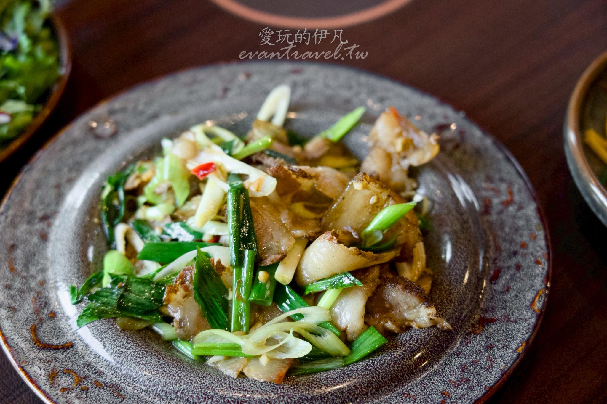 • 蒜苗炒鹹豬肉。蒜苗清香撐起鹹豬肉的油脂與香氣,是極具配飯效力的一道。