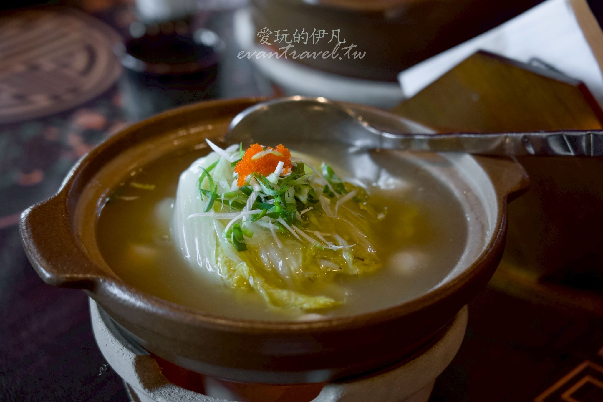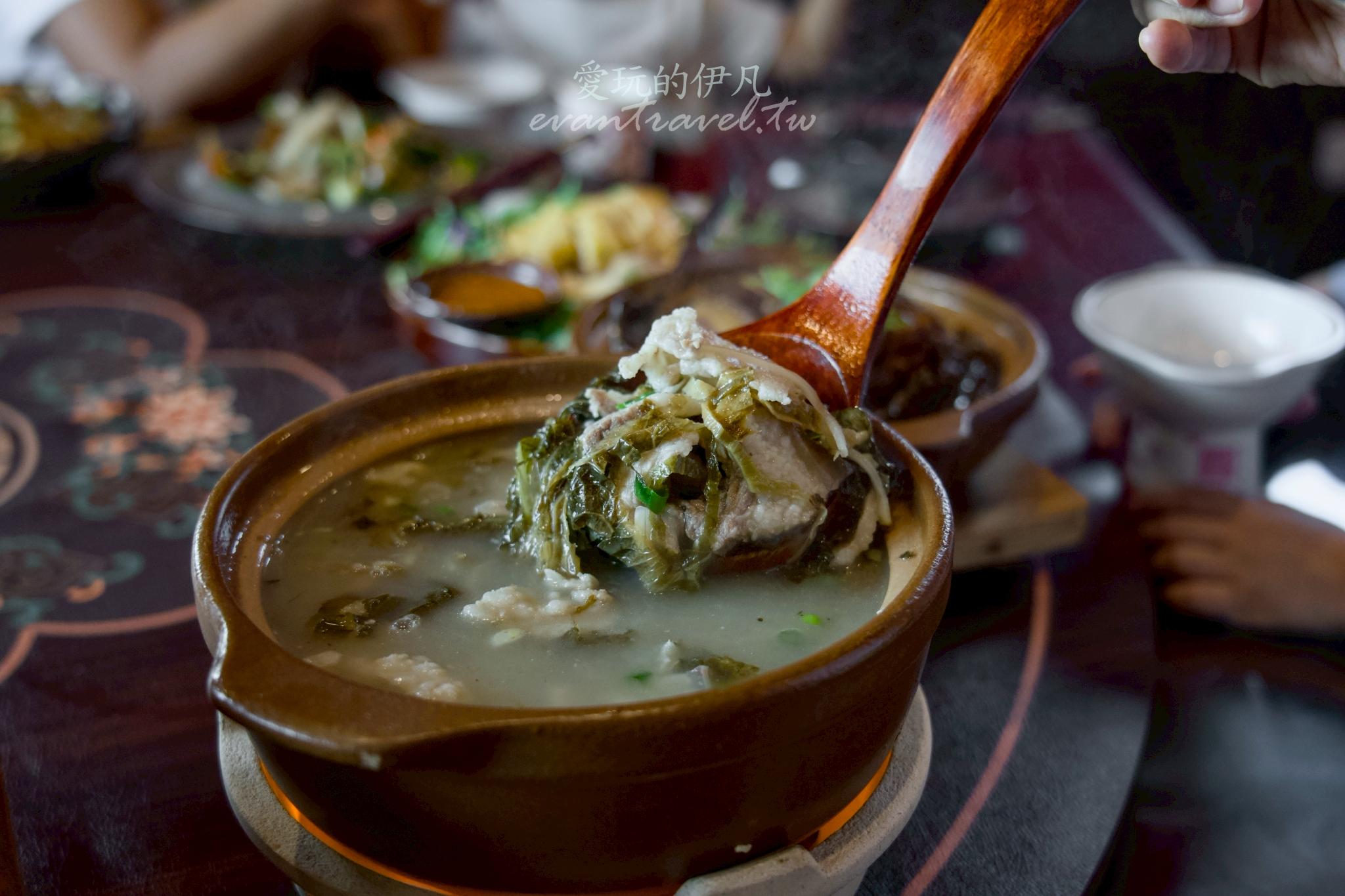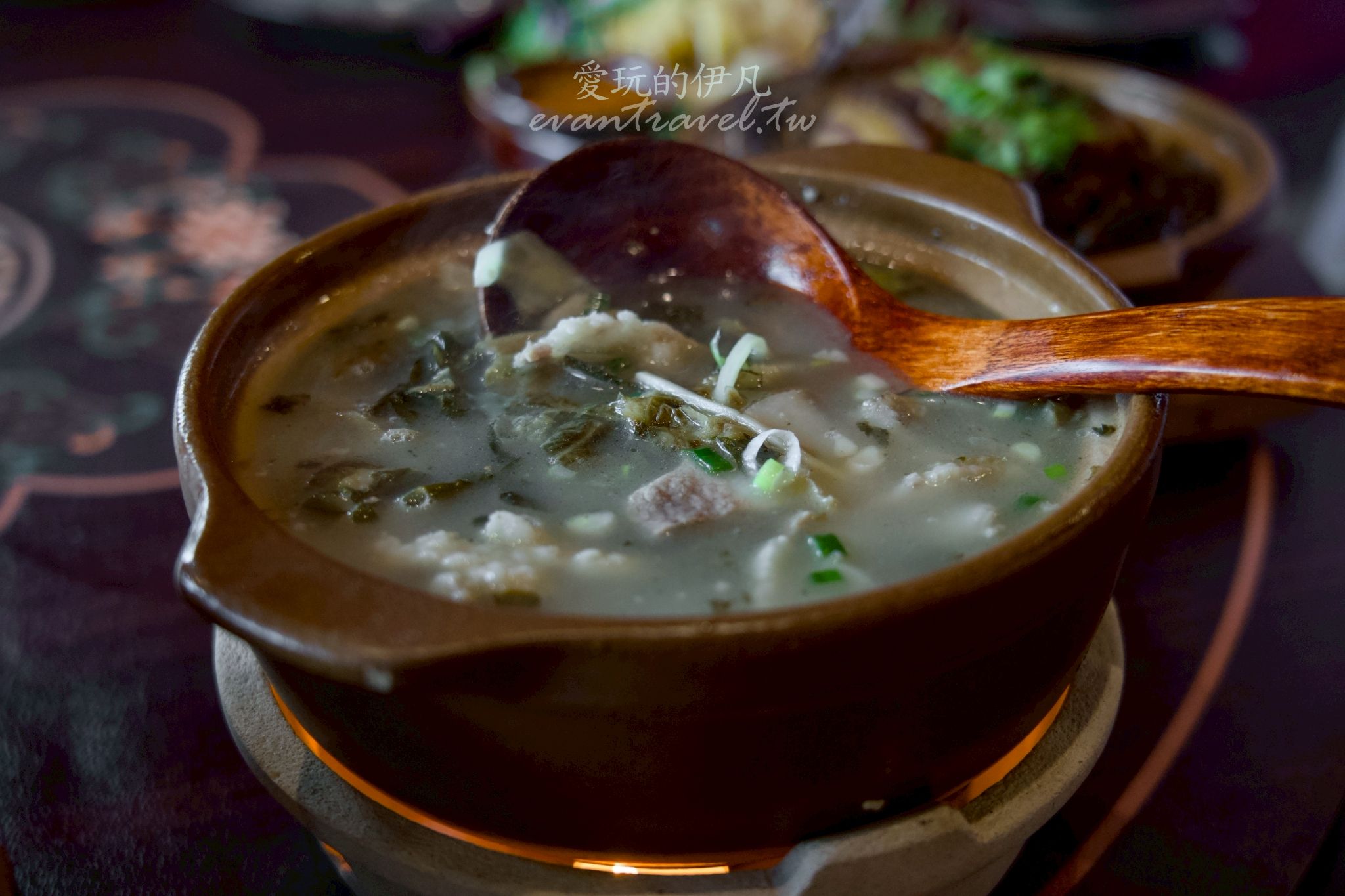 • 福菜白肉湯。白肉切片適中,福菜酸香帶起湯底鮮甜,是整桌料理的溫柔收尾。