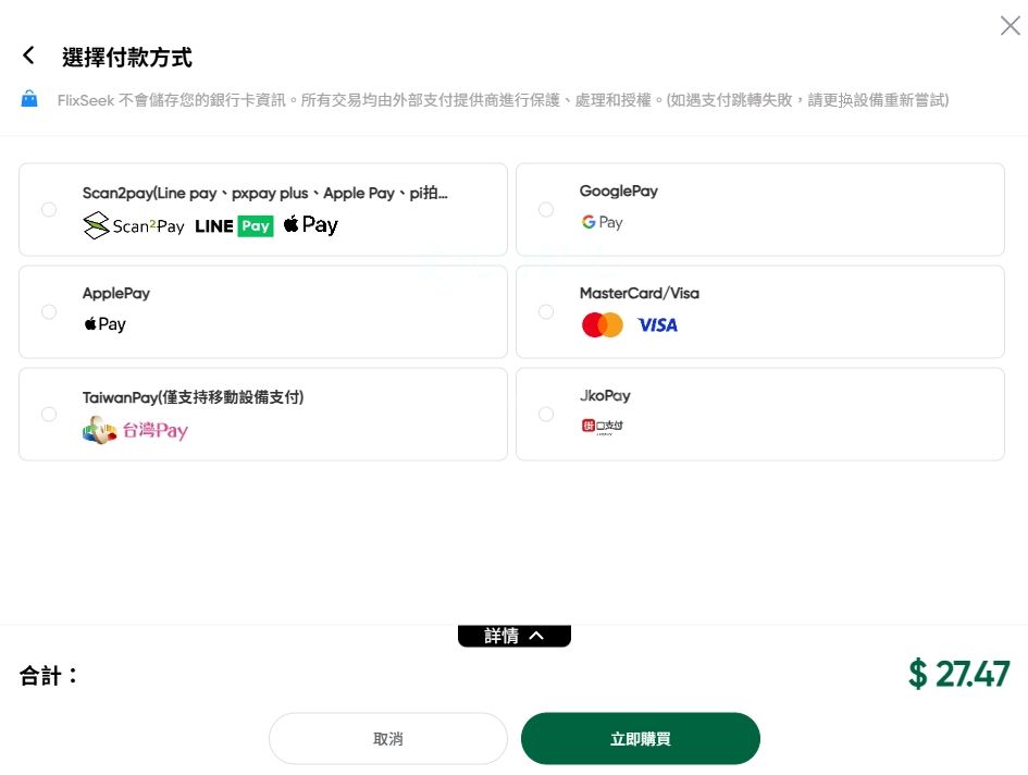FlixSeek 對台灣用戶非常友善,不用擔心沒有國外信用卡。