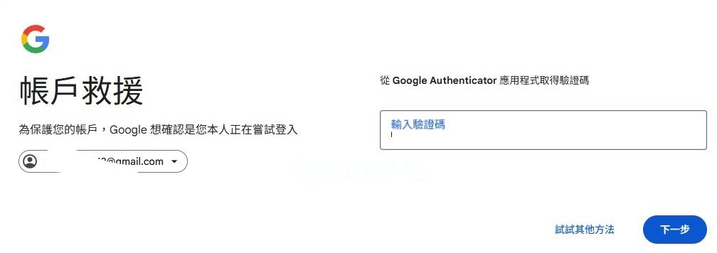 2. 遇到驗證碼攔截: Google 會跳出「帳戶救援」或要求輸入驗證碼的畫面。這時候不要慌,我們不需要手機簡訊。