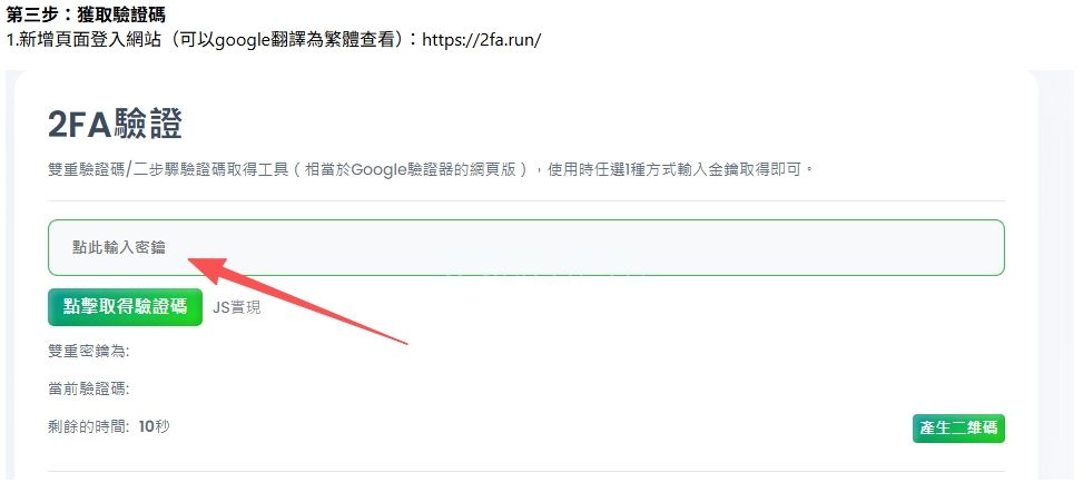 3. 開啟 2FA 工具: 新開一個瀏覽器分頁,前往 2fa.run 這個網站。