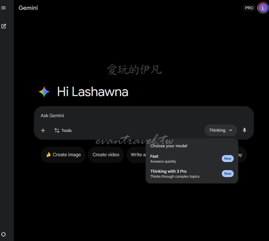你可以點擊對話框上方的模型設定,確認是否已經可以選擇並開啟 “Thinking with 3 Pro” 的功能。