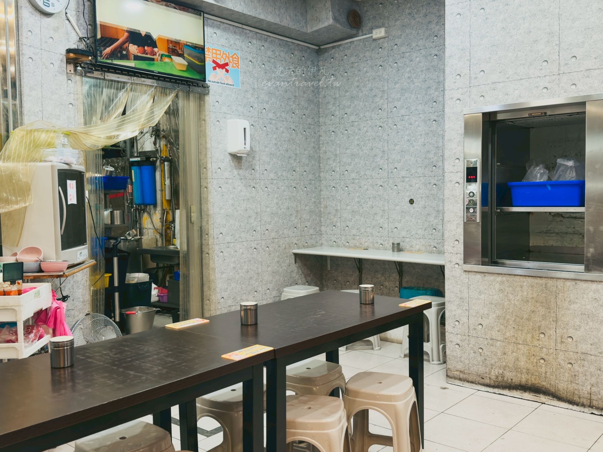 君腿庫飯位於三民區熱鬧的漢口街上,地理位置相當好找,明亮的招牌在夜色中格外顯眼。店內的環境是標準的台灣傳統小吃店風格,雖然沒有網美店的精緻裝潢,但整體維持得相當乾淨明亮。磨石子地板、簡單的桌椅擺設,加上牆上清楚的價目表,營造出一種直爽、不拘小節的用餐氛圍。半開放式的廚房讓顧客在點餐時就能看見那一鍋鍋熱氣騰騰的滷味,那股撲鼻而來的醬香,往往在還沒入座前就先勾起了食慾。
