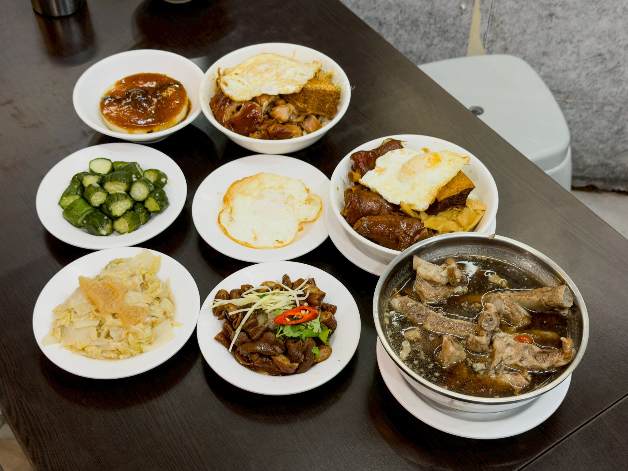 湯頭呈現清澈的琥珀色,帶有淡淡的藥膳香氣。排骨燉煮得軟嫩,湯頭相較於飯類的重鹹,顯得清甜許多,喝完一碗熱湯,讓身體暖和舒適,也緩解了口中的重口味。
