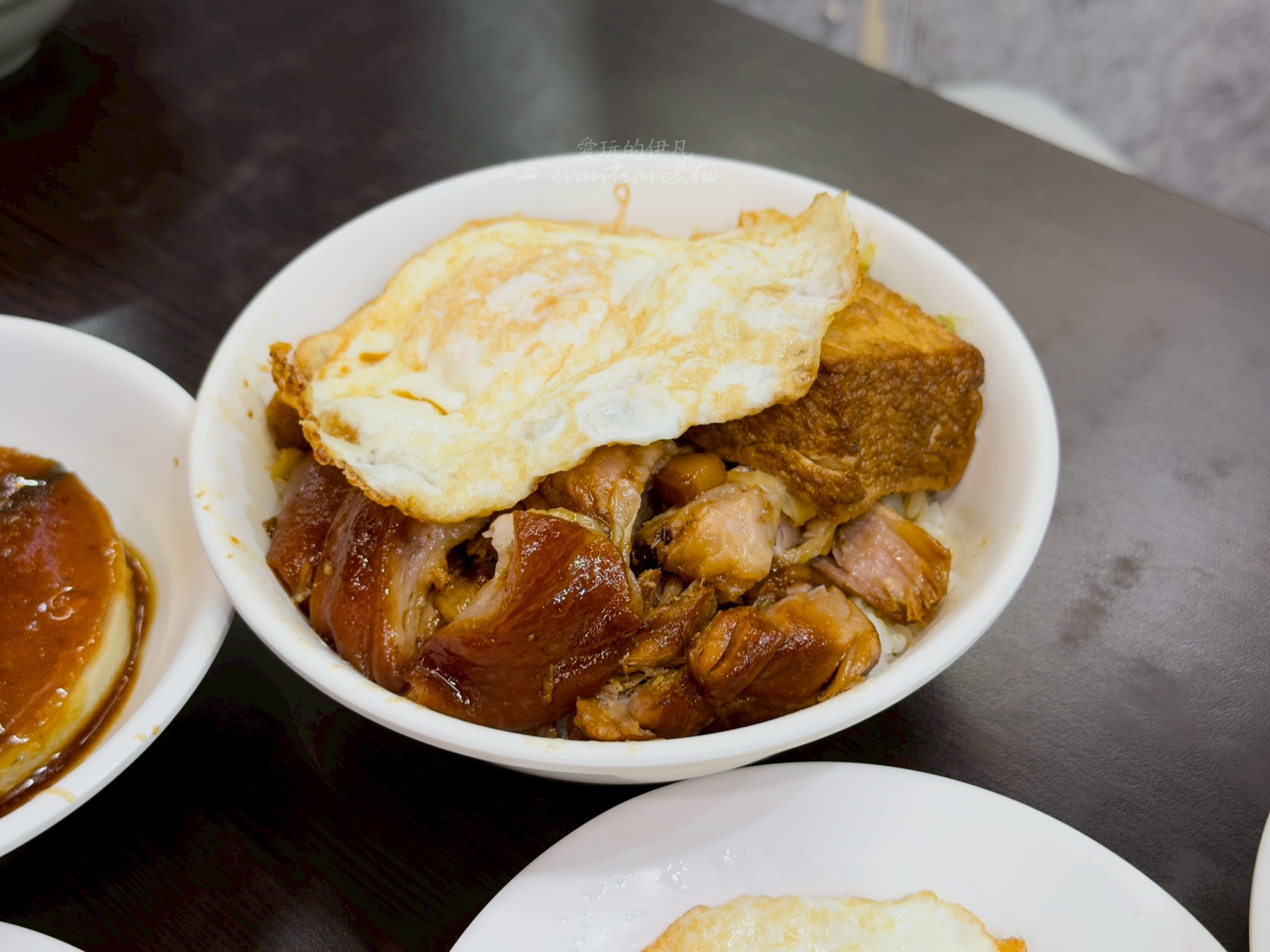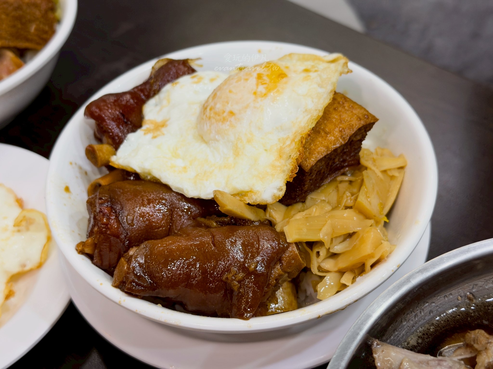 若想一次品嚐不同部位的口感,綜合飯是好選擇。除了腿庫的肥嫩,還搭配了其他部位的滷肉,口感層次豐富,同樣裹滿了那獨門的重鹹滷汁。