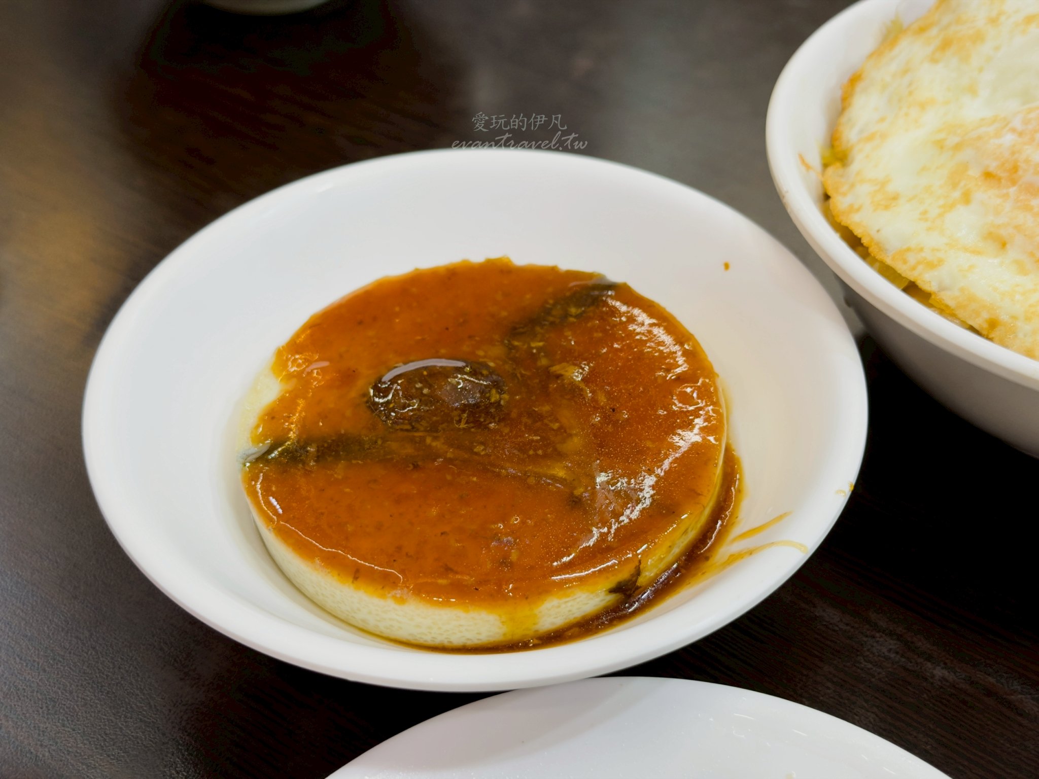 這道是許多熟客的必點。蒸蛋呈現微微的孔隙感,口感紮實Q彈,並非日式茶碗蒸的水嫩路線。蛋體本身吸附了滷汁的香氣,吃起來鹹香夠味,非常有古早味。