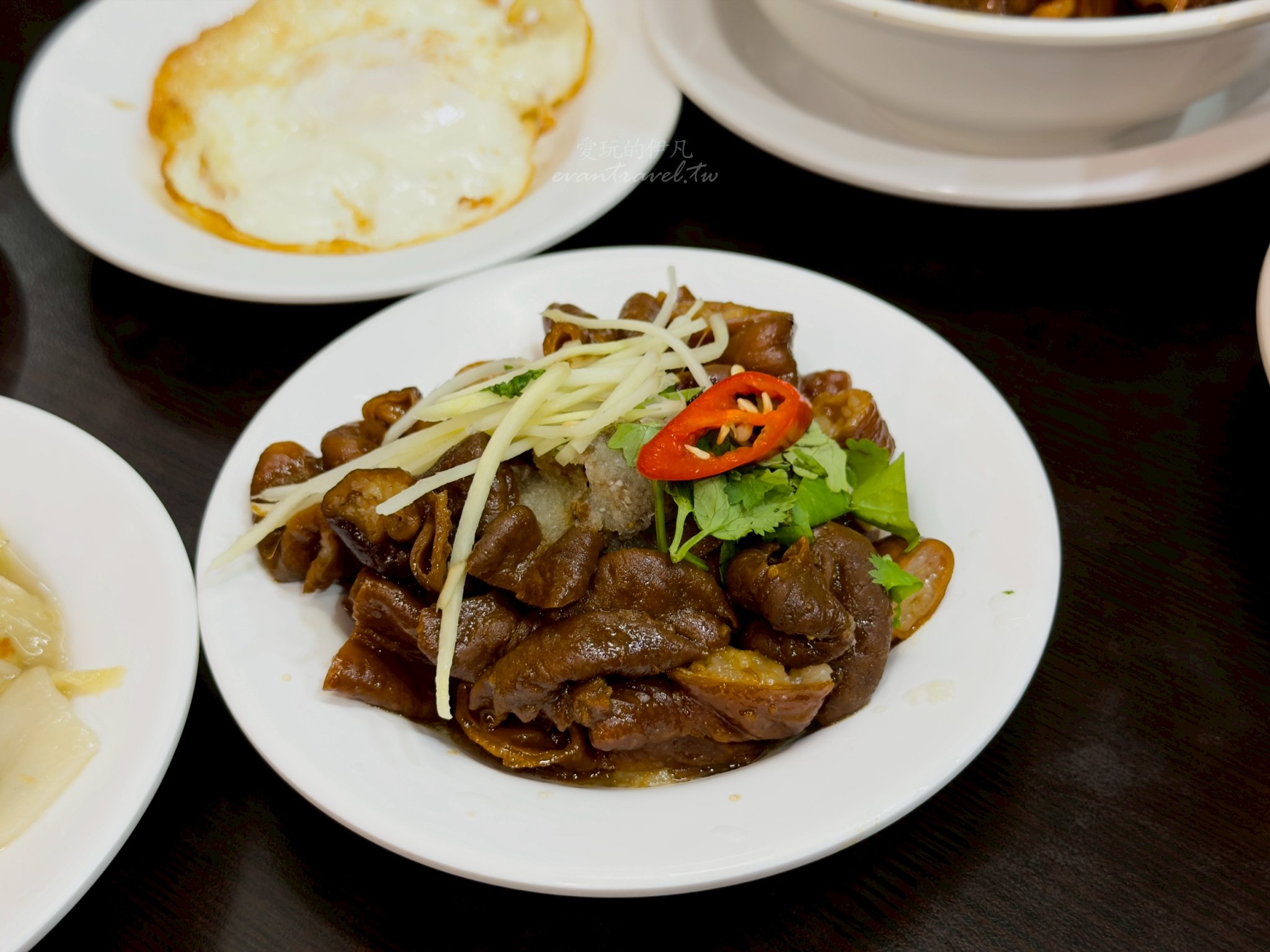 大腸處理得相當乾淨,沒有異味。口感軟糯帶有嚼勁,滷得非常入味,口味偏重鹹,每一口都是濃濃的醬香,是標準的「白飯殺手」。