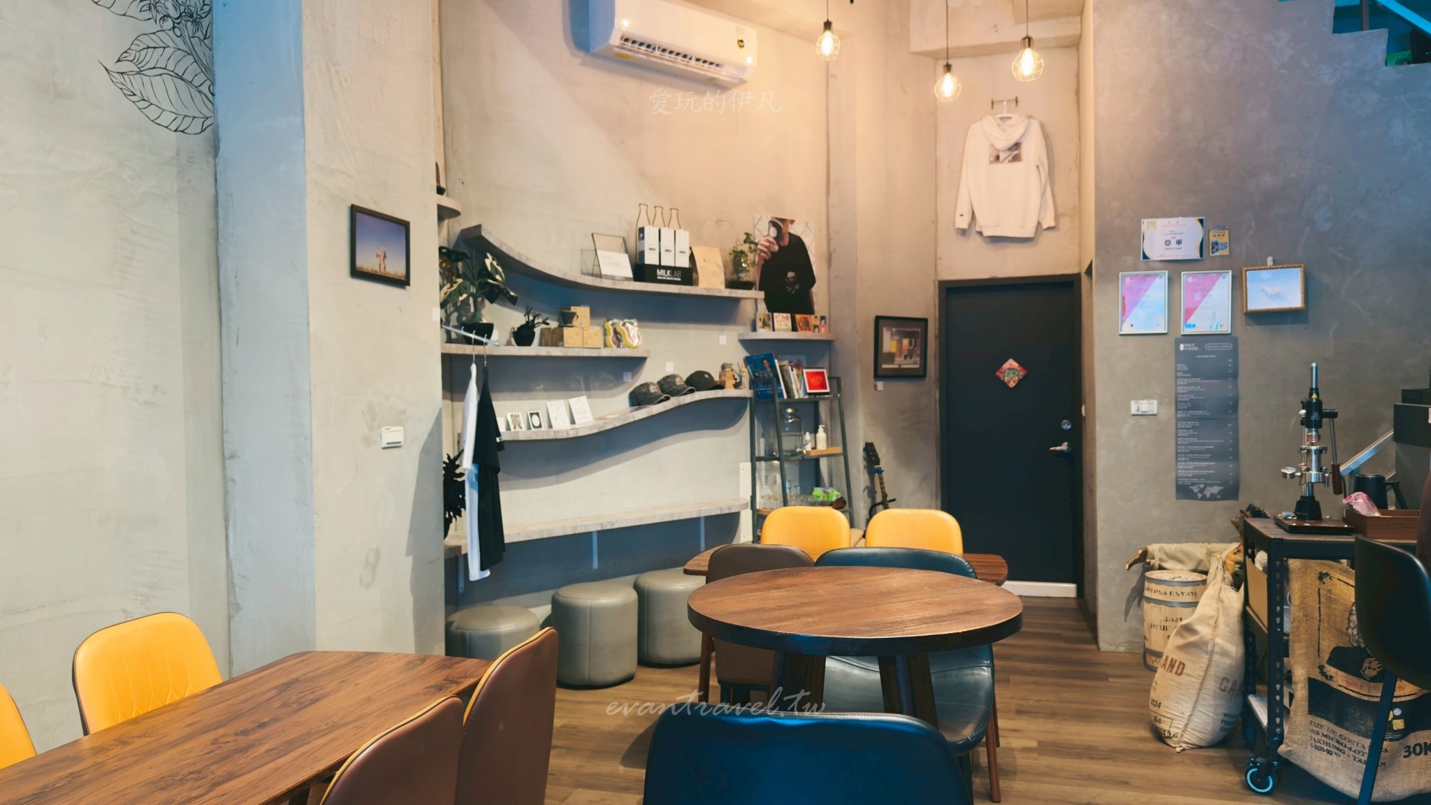 走進店內,迎面而來的是濃厚的質感工業風。室內保留了大量的原始水泥灰色調(清水模質感),挑高的空間設計減少了壓迫感。
