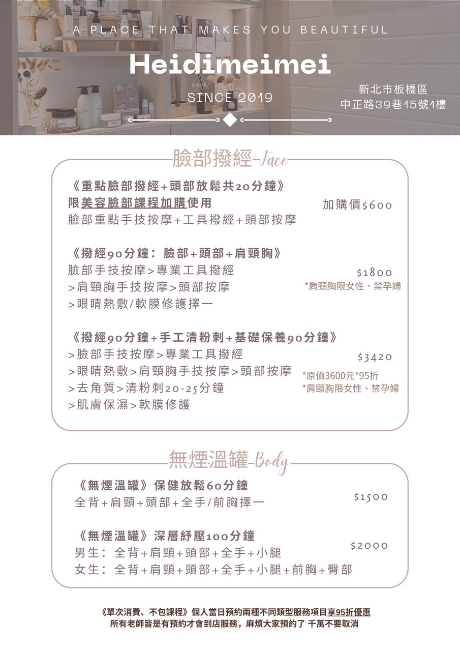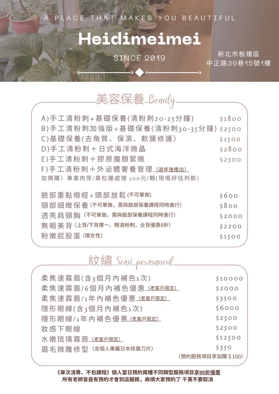 新北市板橋。黑蒂美美Heidimeimei|服務項目與價格