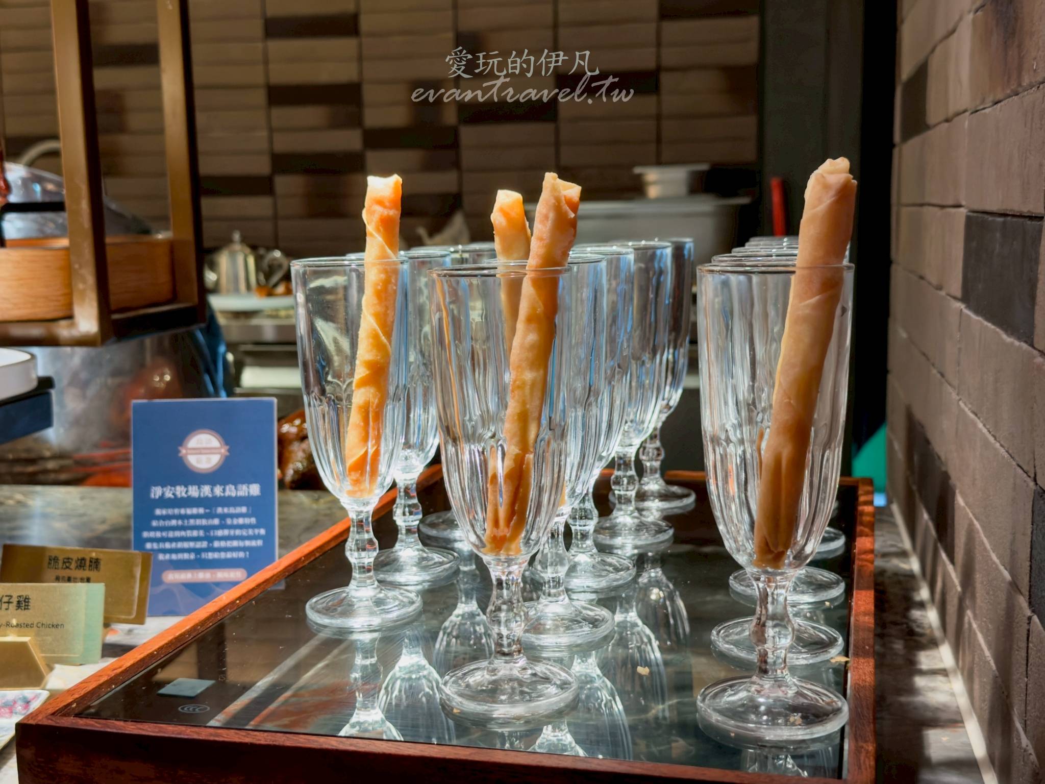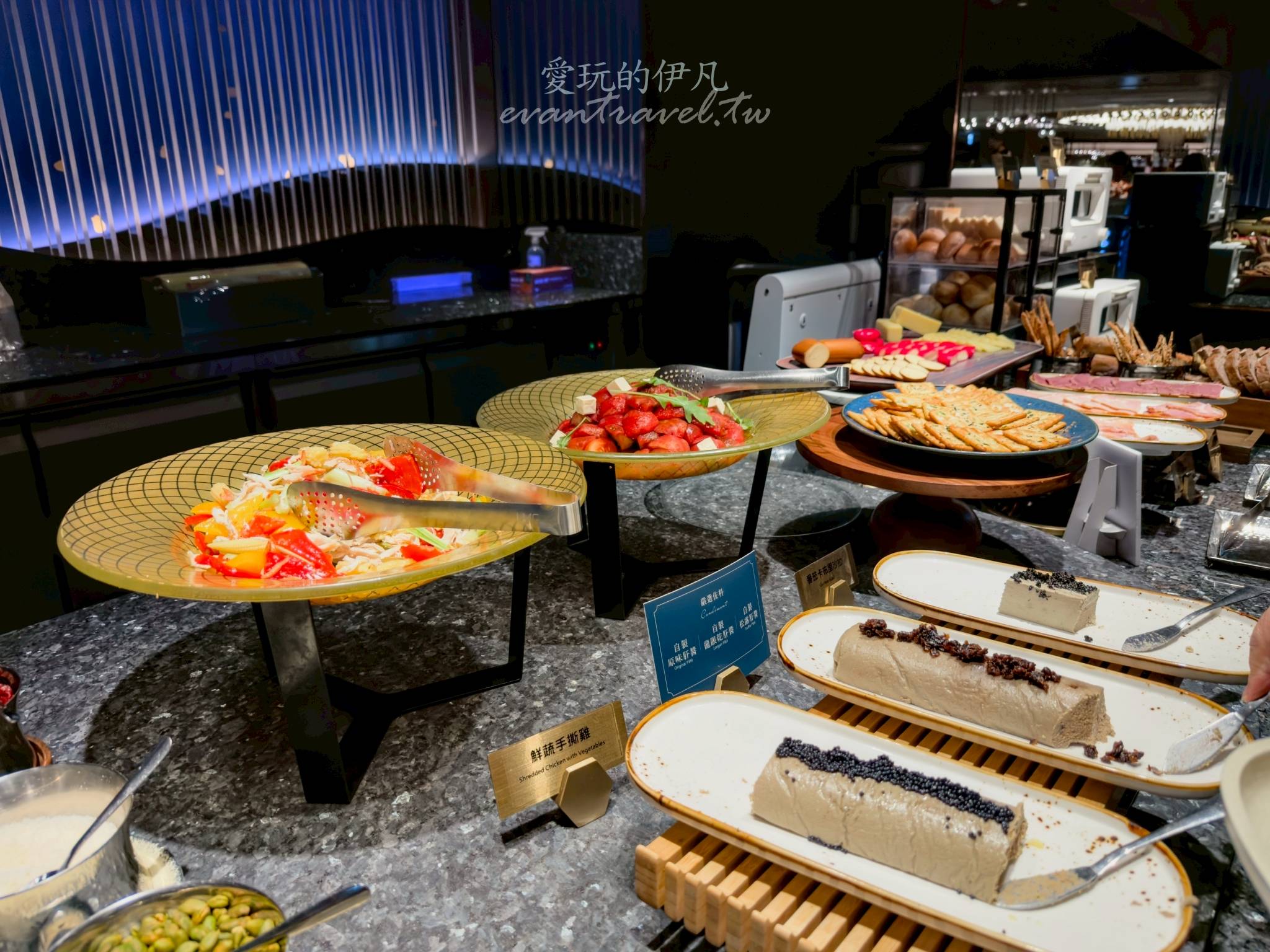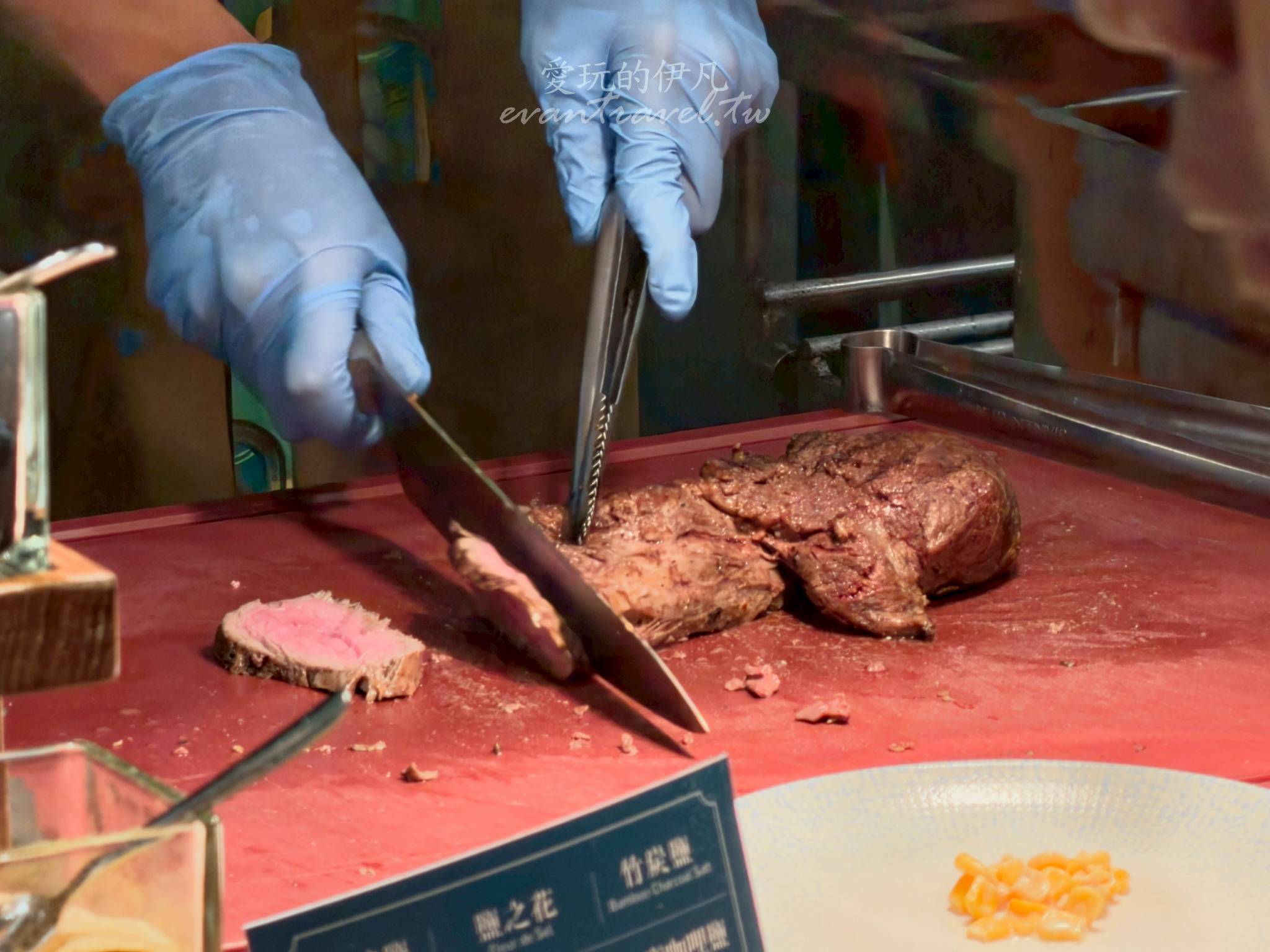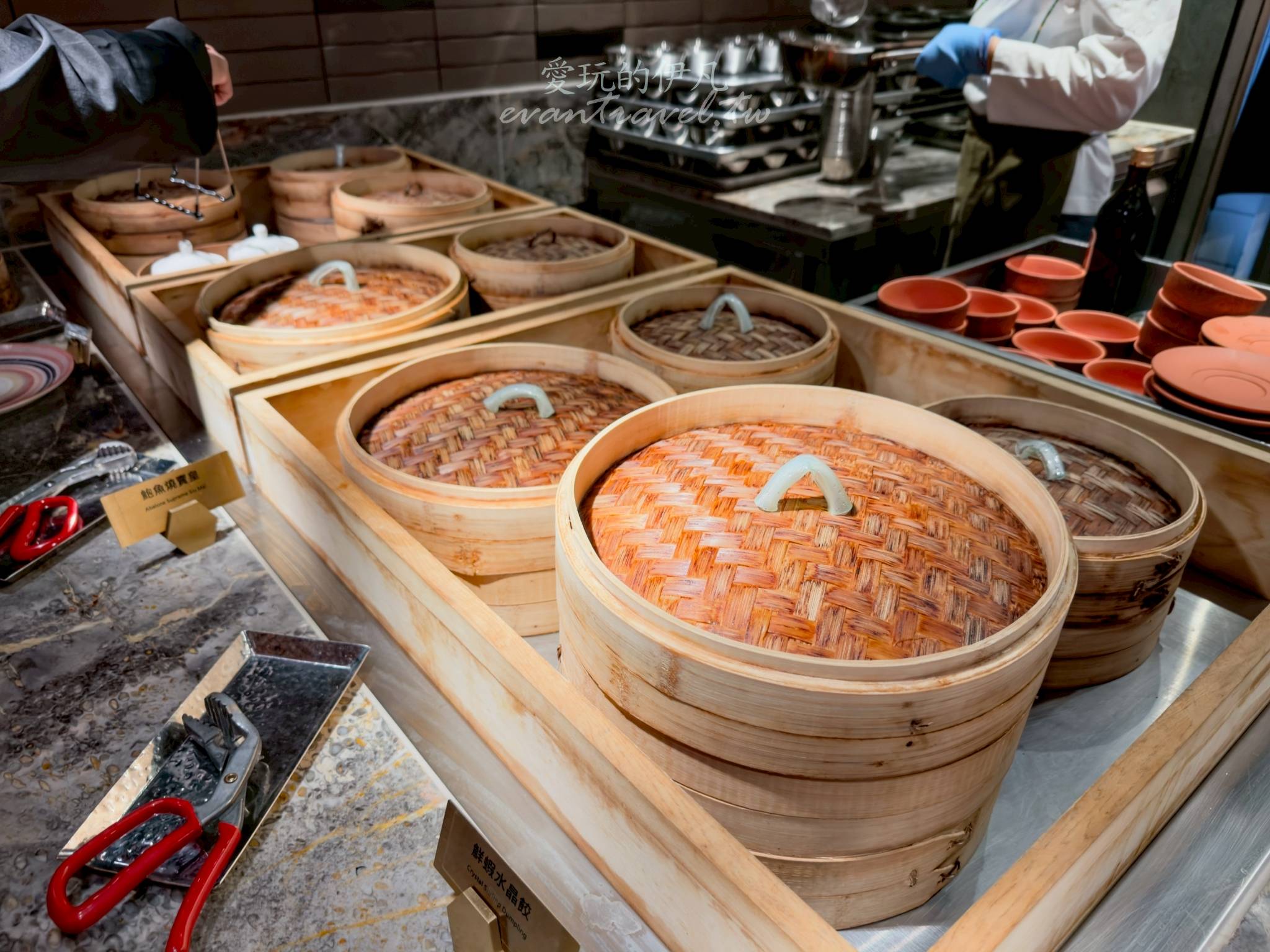 海鮮控的第一站一定是這裡。海鮮冰檯擺滿白蝦、雪場蟹腳、當季螃蟹,還出現一般 buffet 很少看到的法國海螺。冰鎮過後的鮮甜感非常明顯。旁邊還有鮮蔬沙拉區,提供在地小農生菜、產銷履歷水果,加上一整支現切帕瑪火腿、松露肝醬、波特葡萄肝醬,搭配冰白酒或氣泡飲開胃效果極佳。