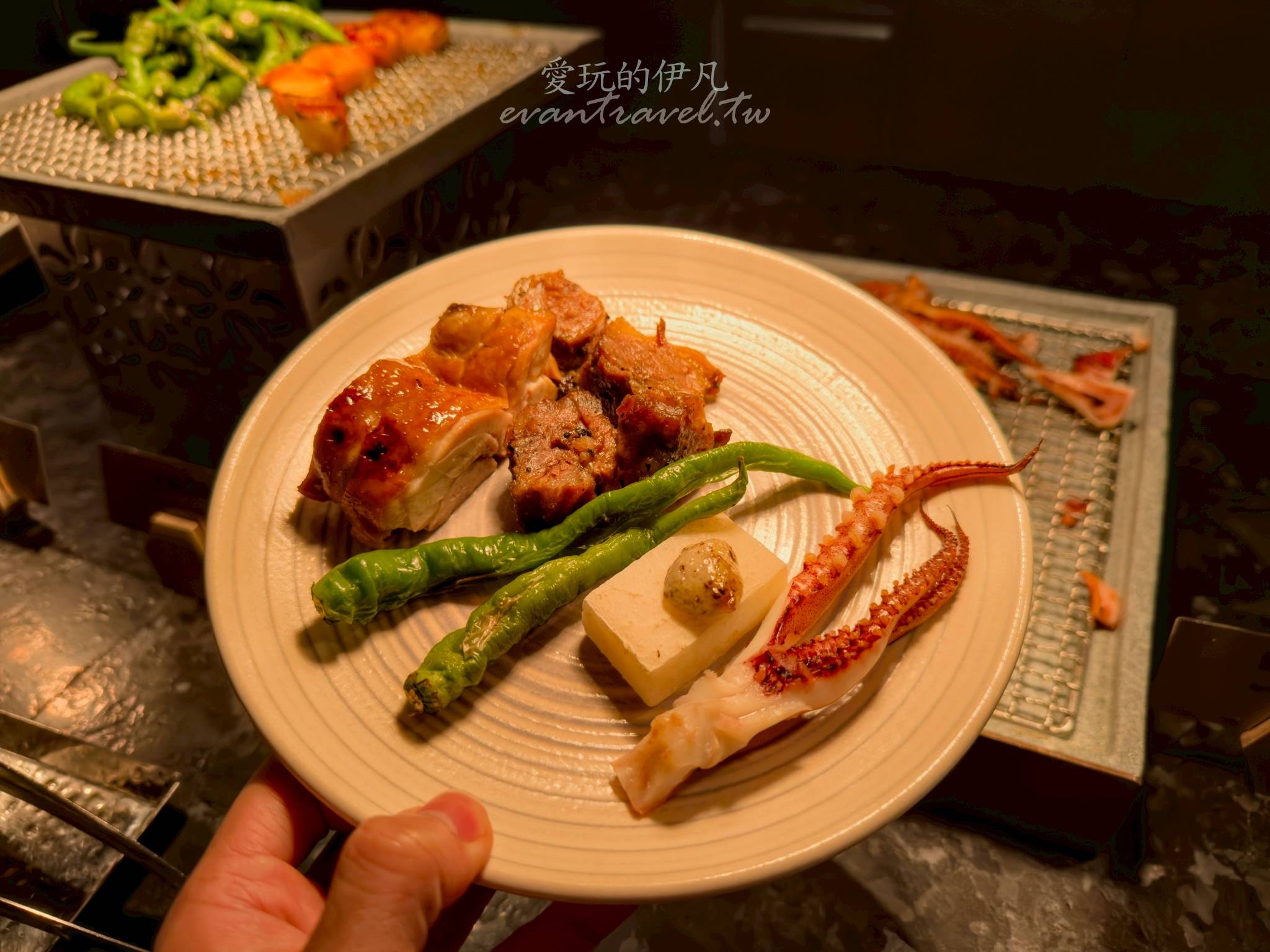 這區完全是視覺系。主廚用琴酒點火炙燒生蠔的畫面超吸睛,火焰升起的一瞬間香氣直接飄過來。烤鰻魚、魷魚一夜干、醬燒雞腿與骰子牛都是熱門品項。若喜歡搭配酒款的話,這區很適合拿紅酒或清酒一起享用,不喝酒的話搭配梅酒醋飲清爽又平衡。