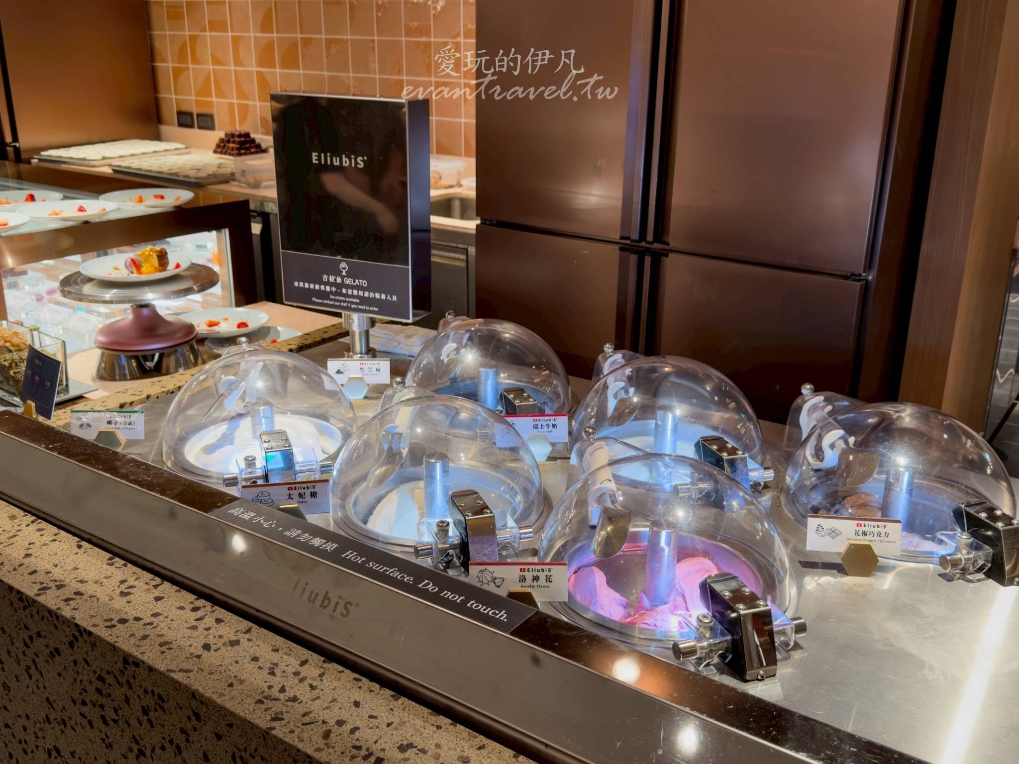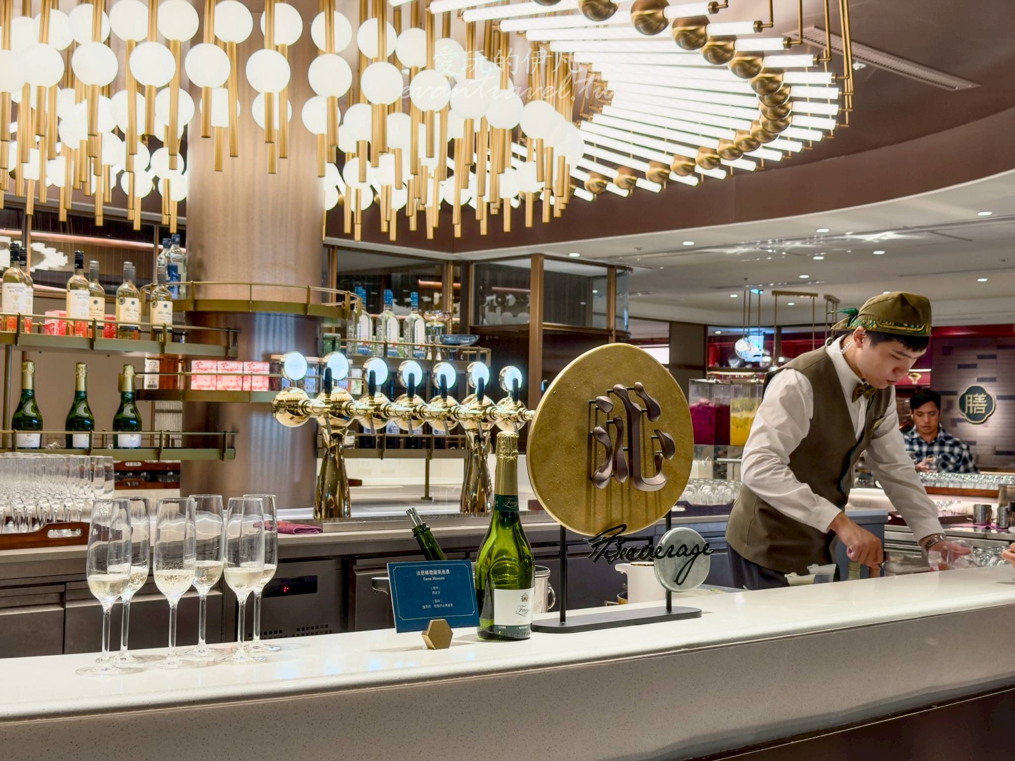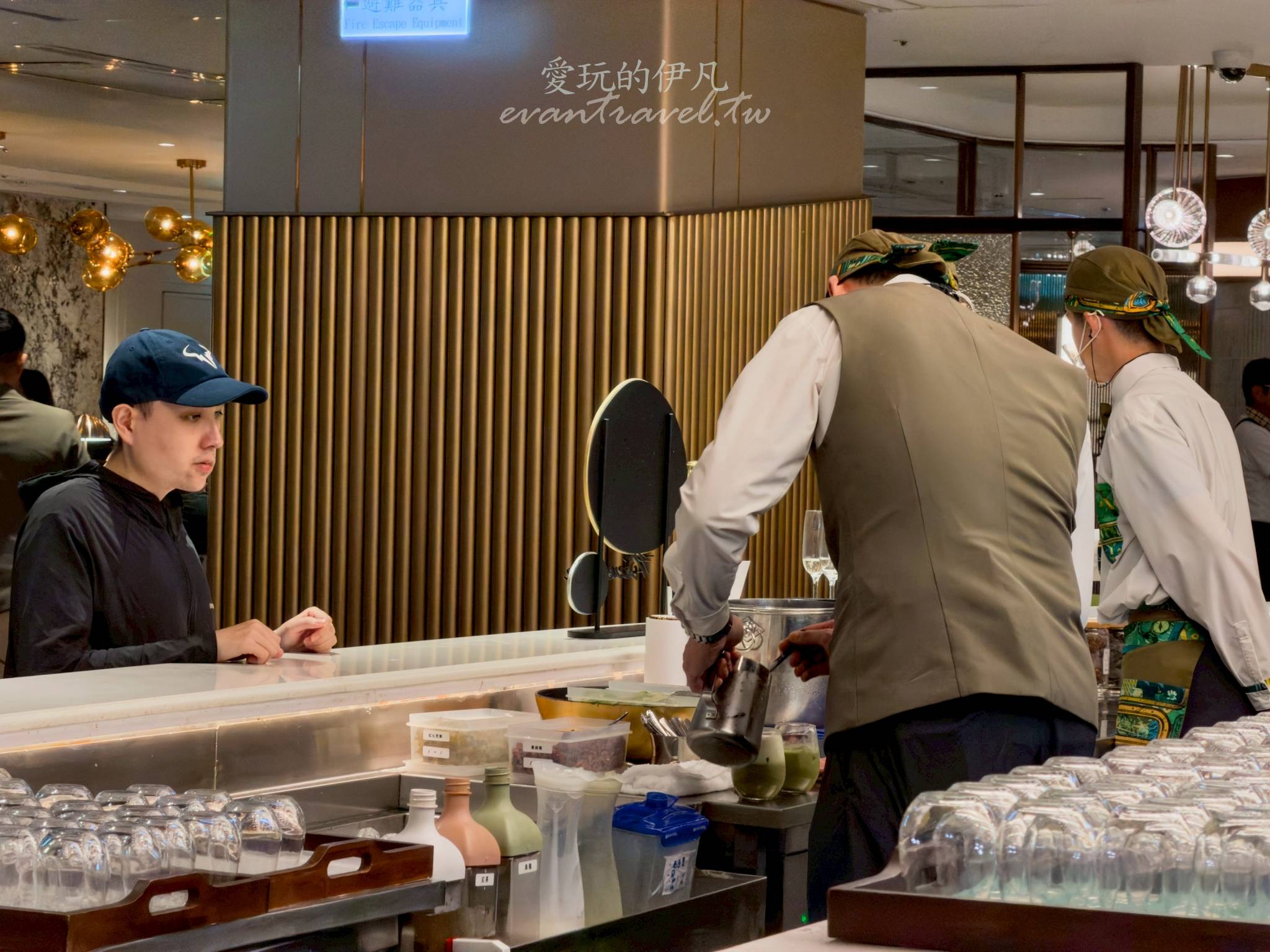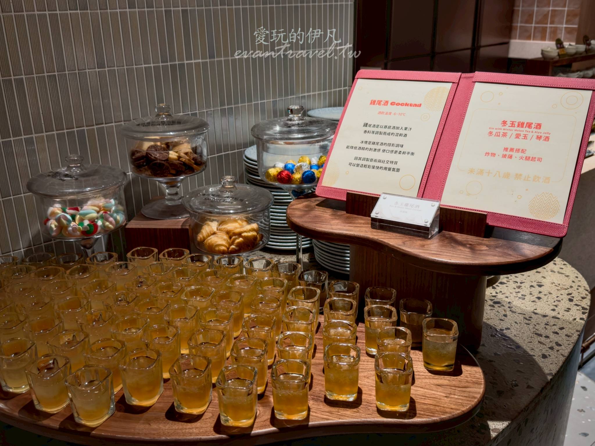 甜點區完全是女孩的世界,整個檯面像精品展示櫃。現烤舒芙蕾、熔岩巧克力蛋糕、義式吉拉朵冰淇淋都是必吃。不定期更換的六種口味,每款甜度偏低、入口細緻,是吃到飽少見的「不甜膩」風格。最後來杯以琴酒+冬瓜茶調成的「冬玉雞尾酒」,完美圓滿整餐。