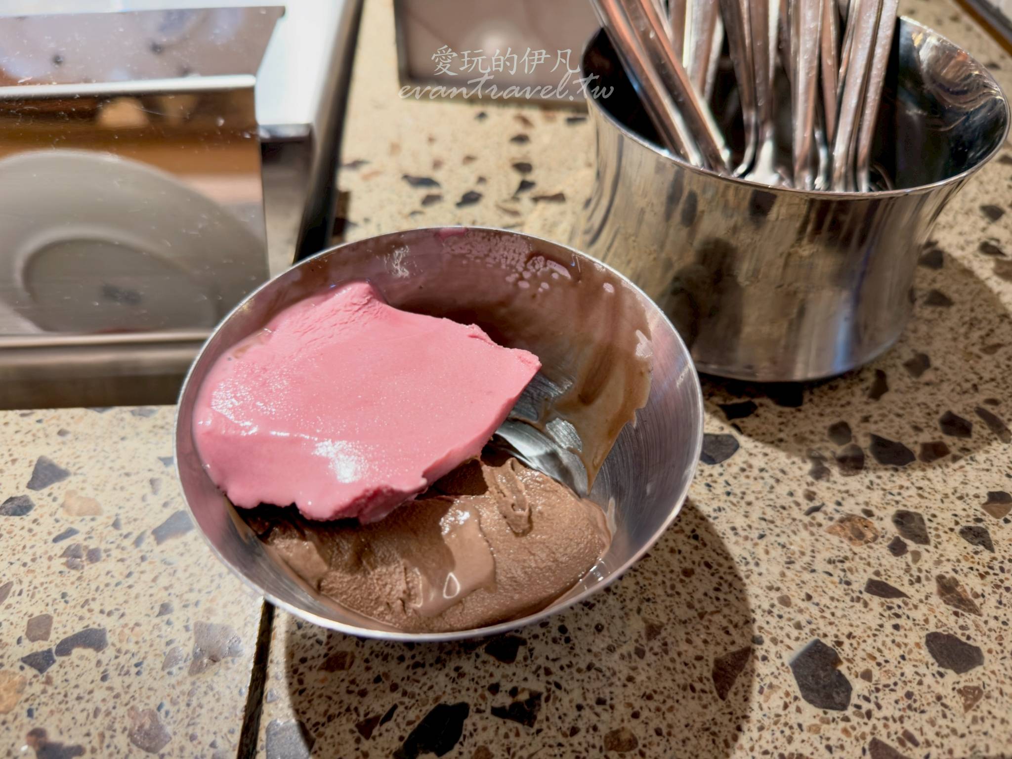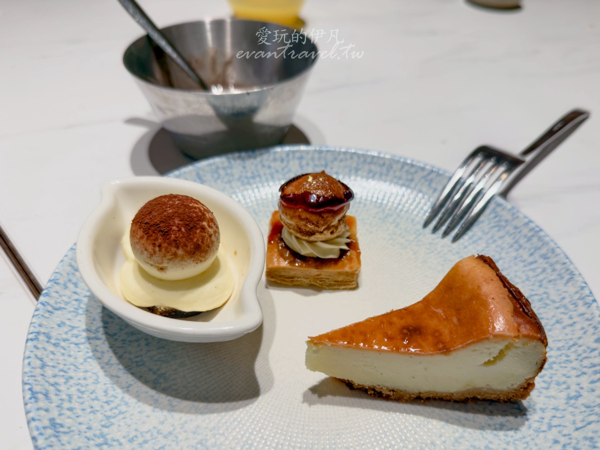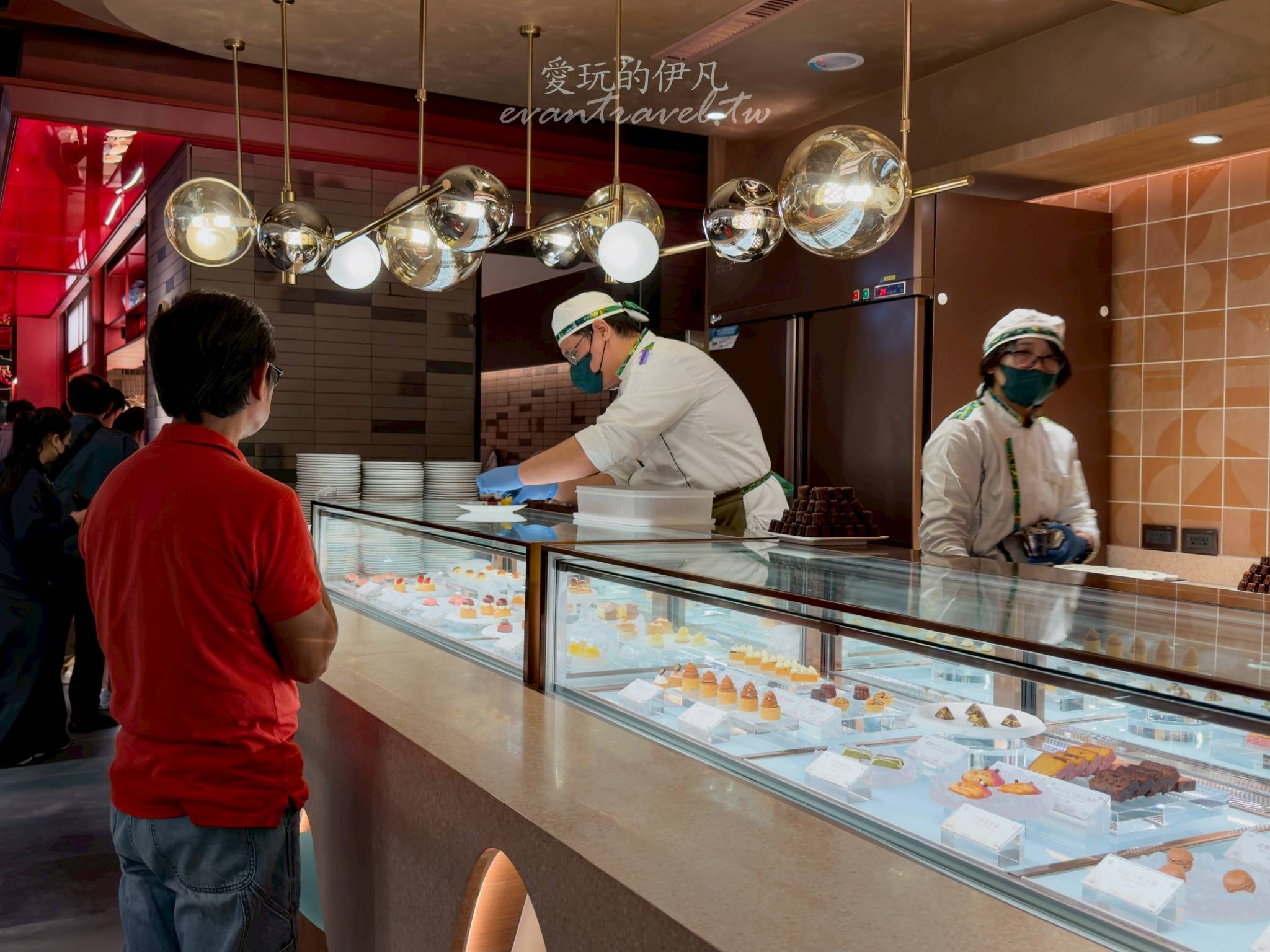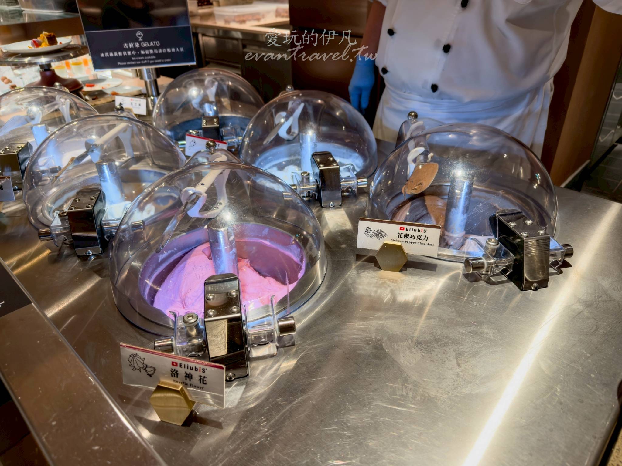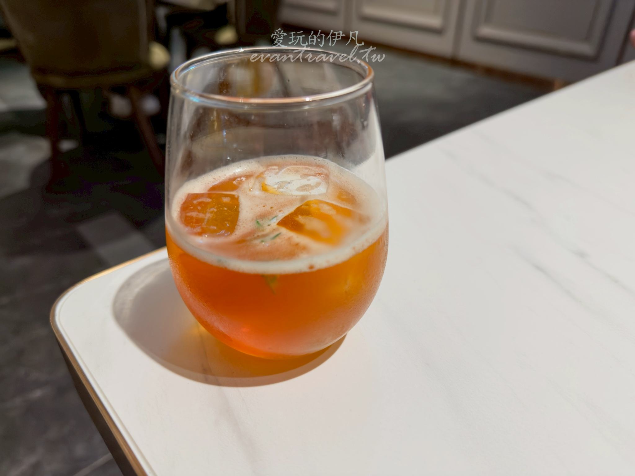 甜點區完全是女孩的世界,整個檯面像精品展示櫃。現烤舒芙蕾、熔岩巧克力蛋糕、義式吉拉朵冰淇淋都是必吃。不定期更換的六種口味,每款甜度偏低、入口細緻,是吃到飽少見的「不甜膩」風格。最後來杯以琴酒+冬瓜茶調成的「冬玉雞尾酒」,完美圓滿整餐。