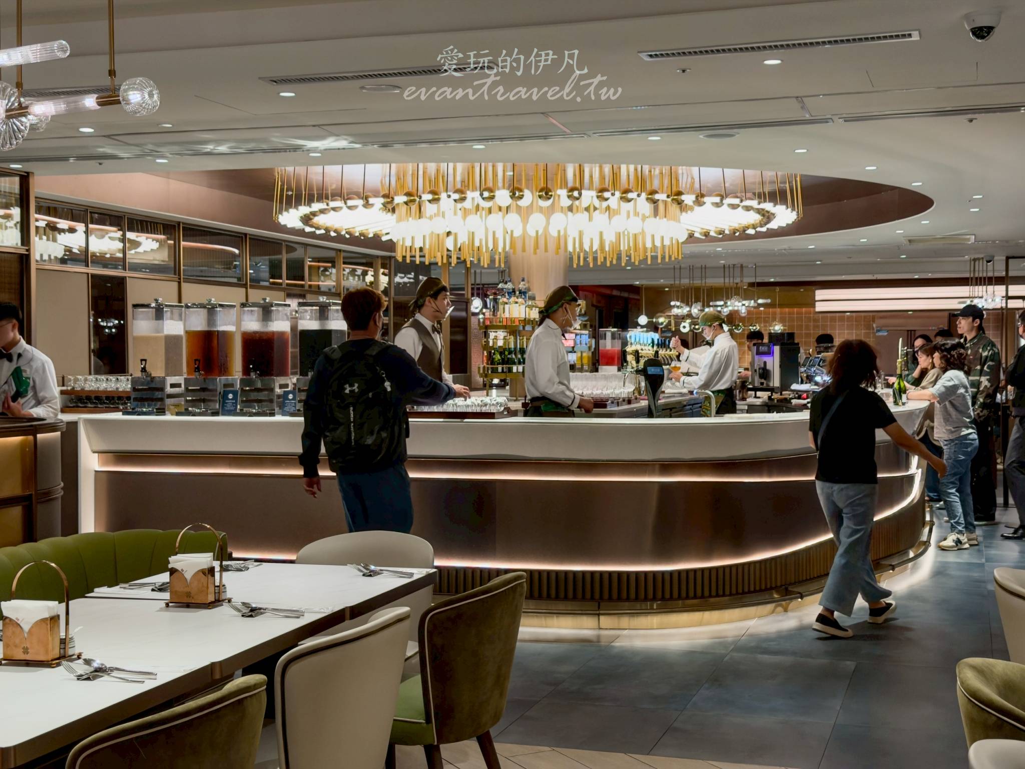 店內動線流暢,九大餐檯區域分明,取餐與用餐環境舒適,不會互相干擾。入口處設有飲品吧台,餐檯分區清楚,也有哺乳室,對親子客相當友善。
