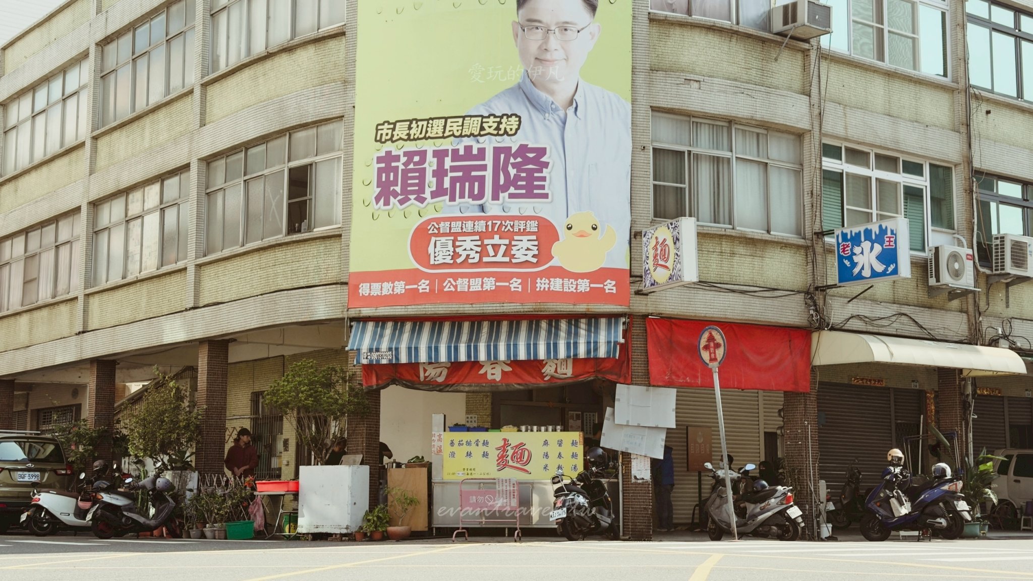 💡 2026 最新找路地標:認明「賴瑞隆」! 這次去發現一個超級好認的地標,店面上方掛著一個超巨大的「賴瑞隆」競選看板,非常顯眼!只要認得這個地標,或是看到轉角處停滿機車、人潮滿滿的那個騎樓,就是無名麵店沒錯了。