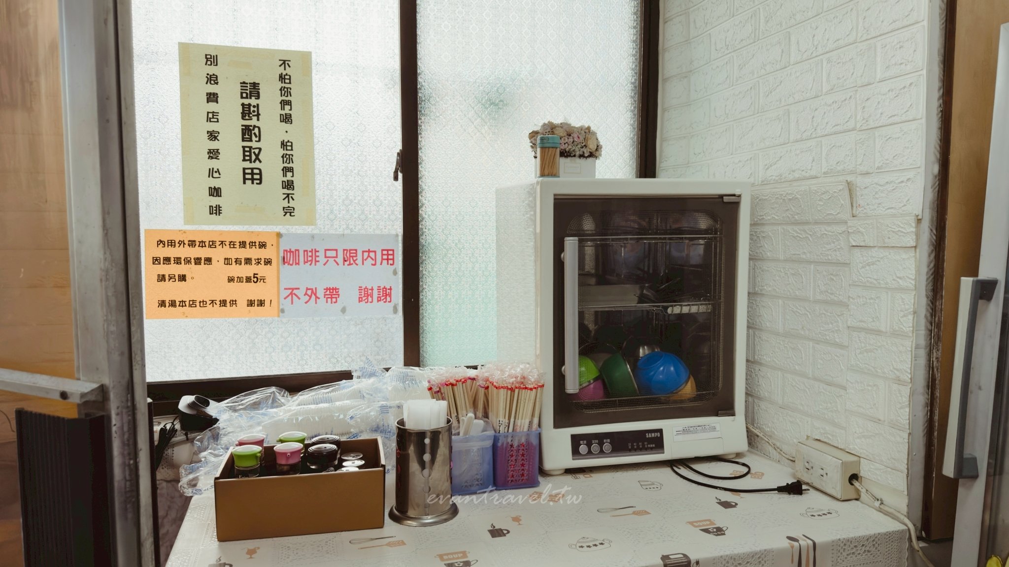 雖然是傳統麵店,但環境維持得相當乾淨。煮麵區熱氣蒸騰,看著老闆專注地甩麵、淋油,那種職人的神情讓人對餐點充滿期待。 此外,這次在店內牆上發現一個有趣的公告:「咖啡只內用,不外帶」。在傳統麵店裡還能喝到老闆特製的愛心咖啡,這真的是熟客才懂的小確幸啊!
