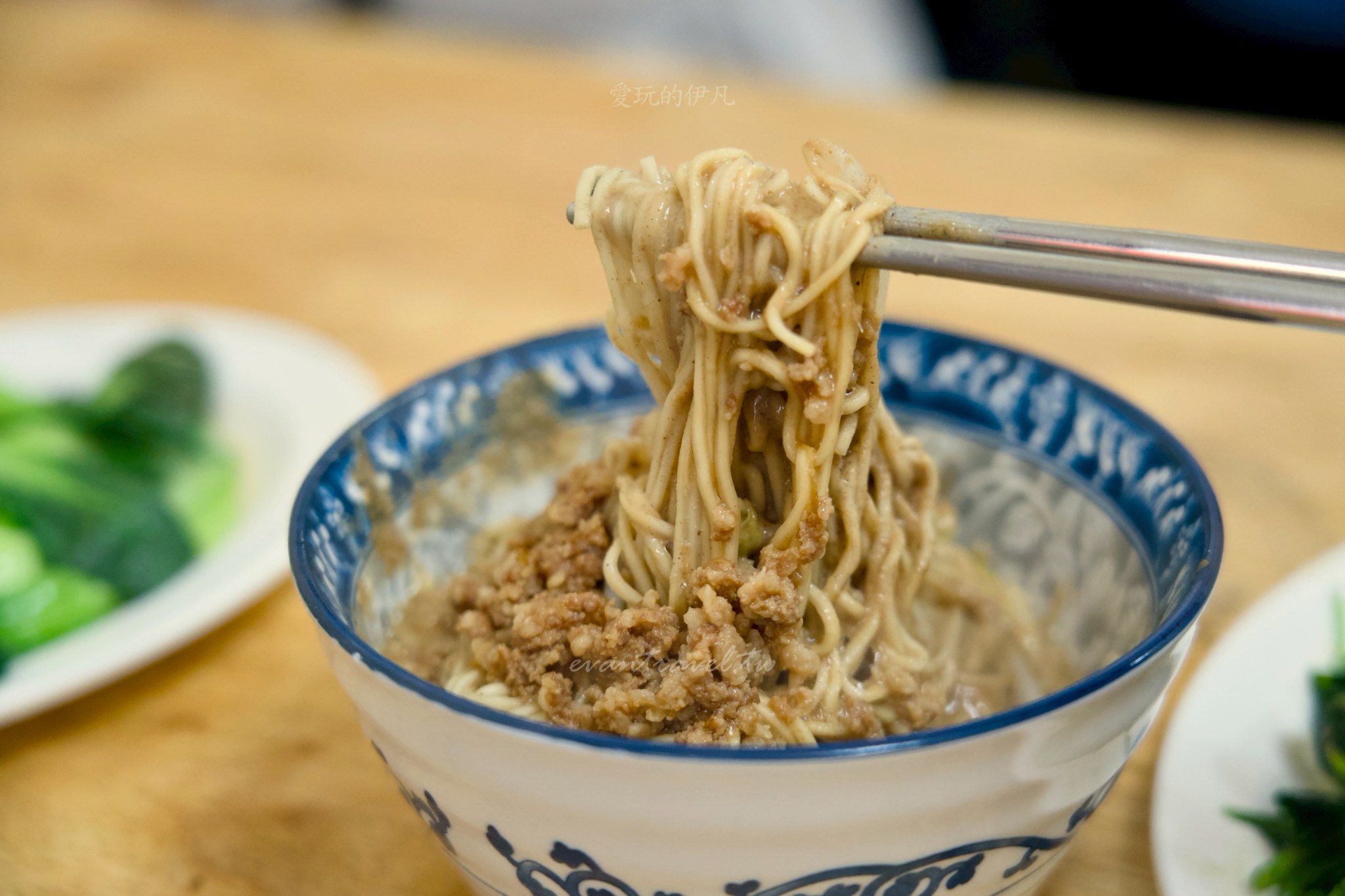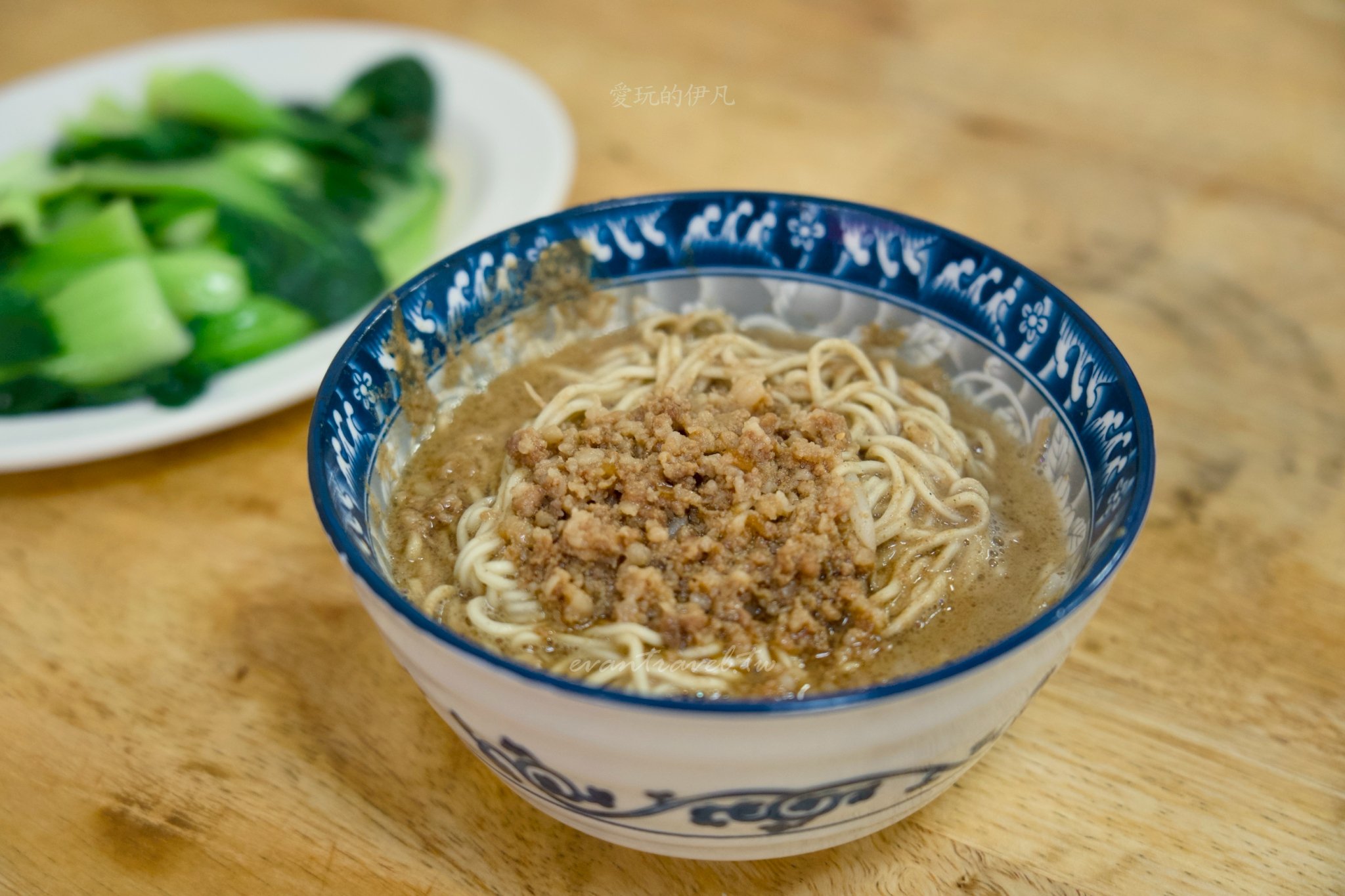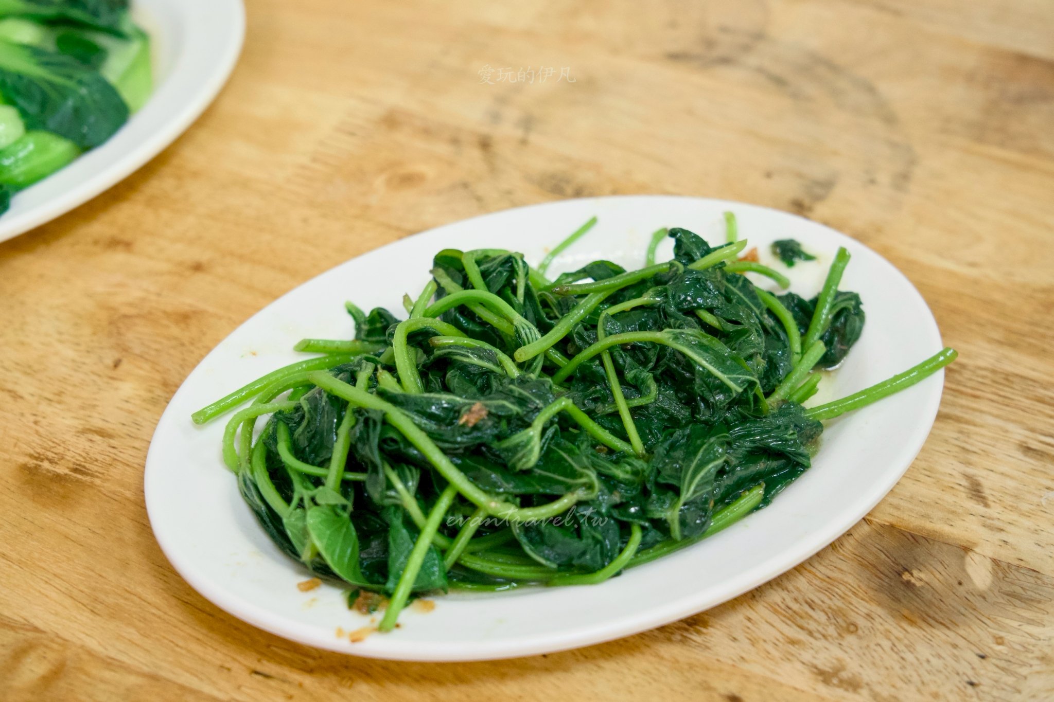 當然,吃麵也要配點青菜均衡一下,這裡的燙青菜(地瓜葉、青江菜)都處理得很乾淨翠綠。