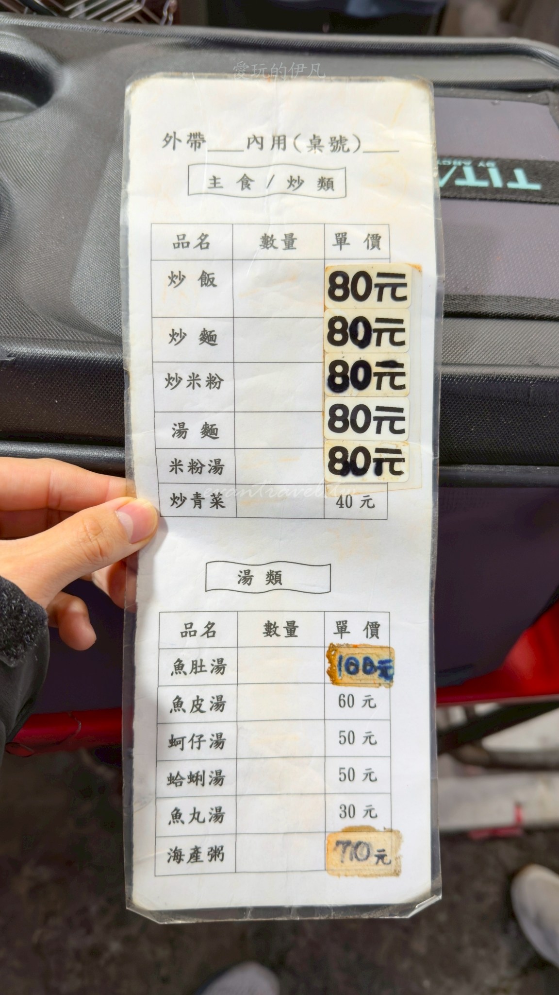 點餐方式也非常接地氣:先到點餐區領取黃色菜單劃單,交給正在鐵板前忙碌的大姊並先行付款。看著大姊俐落地鋪上飽滿的鮮蚵、打入雞蛋,最後壓上大把青菜,那種鐵板與鏟子敲擊出的節奏感,就是最棒的開胃秀。