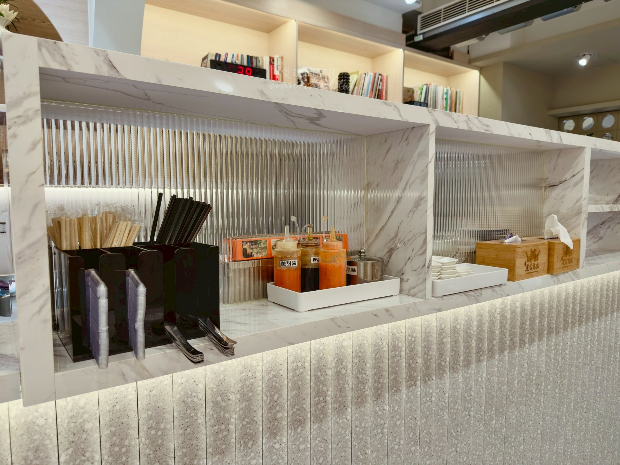 用餐區域的規劃相當靈活,既有適合單人用餐的吧台或小桌,也有方便家庭客或三五好友聚餐的四人方桌。桌面隨時保持乾淨,自助區的餐具與醬料排列整齊,細節中展現了店家對衛生的重視。