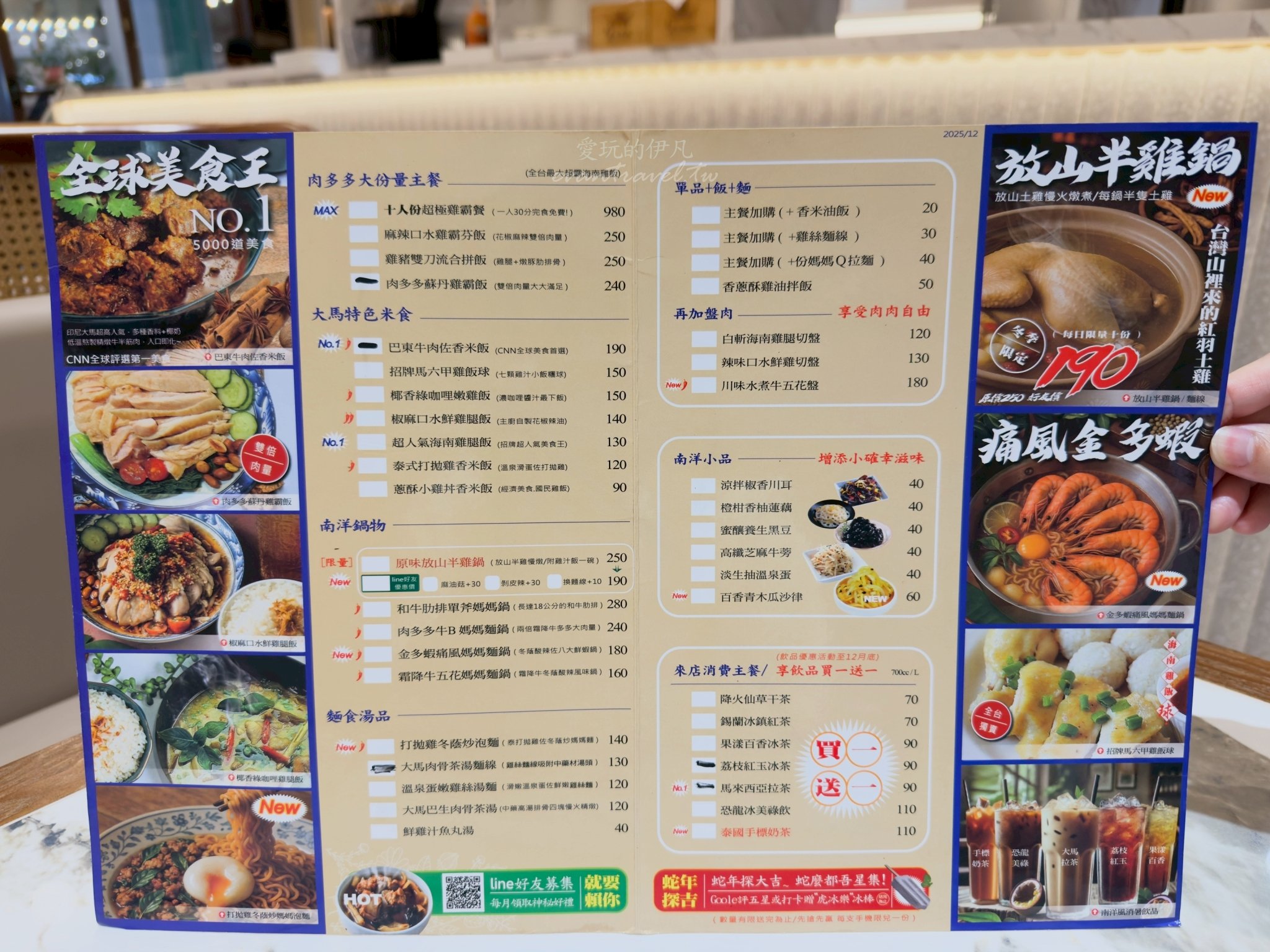 - 推薦必點:肉多多蘇丹雞霸飯、巴東牛肉佐香米飯、大馬肉骨茶湯麵線。