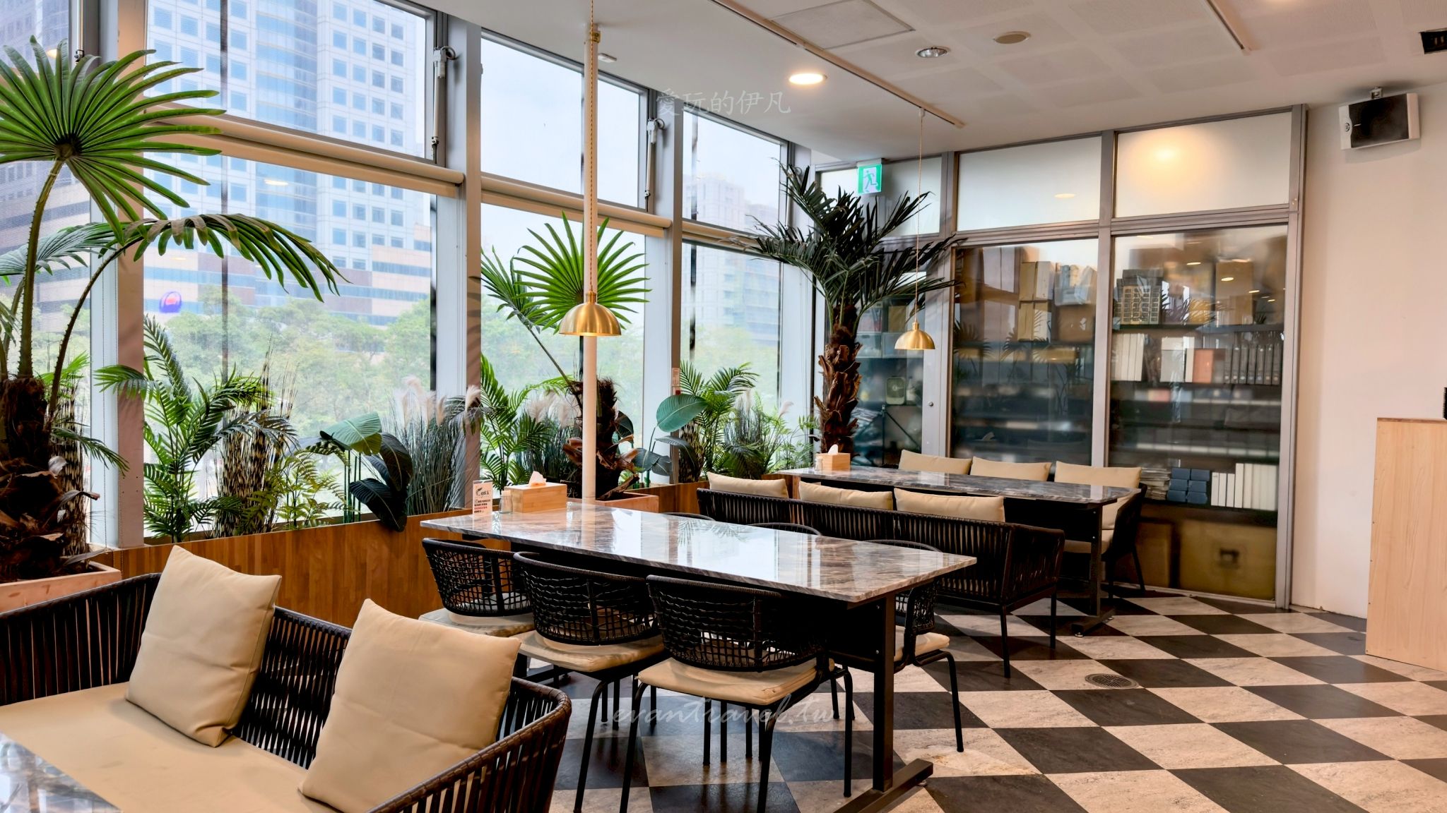 走進店內,首先會被這裡的採光吸引。挑高的空間搭配大面積的玻璃窗,讓自然光灑落進來,整體氛圍非常明亮寬敞。座位區的設計也很舒適,不管是多人聚餐的長桌,還是適合少人數的沙發區都有。坐在窗邊還能欣賞外面的綠意與城市街景,在這裡用餐的心情會變得很放鬆。
