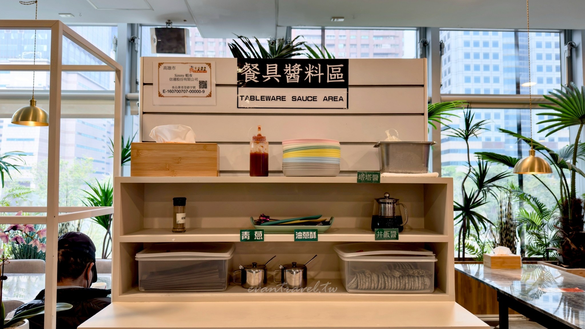 自助區與飲料吧 這裡不收服務費,餐具、醬料都需要自取。自助區維持得很整潔,有提供檸檬水、調味料等。 最重要的是這個飲料吧!只要點定食套餐,這裡的飲料(當天有檸檬紅茶、果汁等)通通無限暢飲,這在高雄炎熱的午後真的太佛心了。