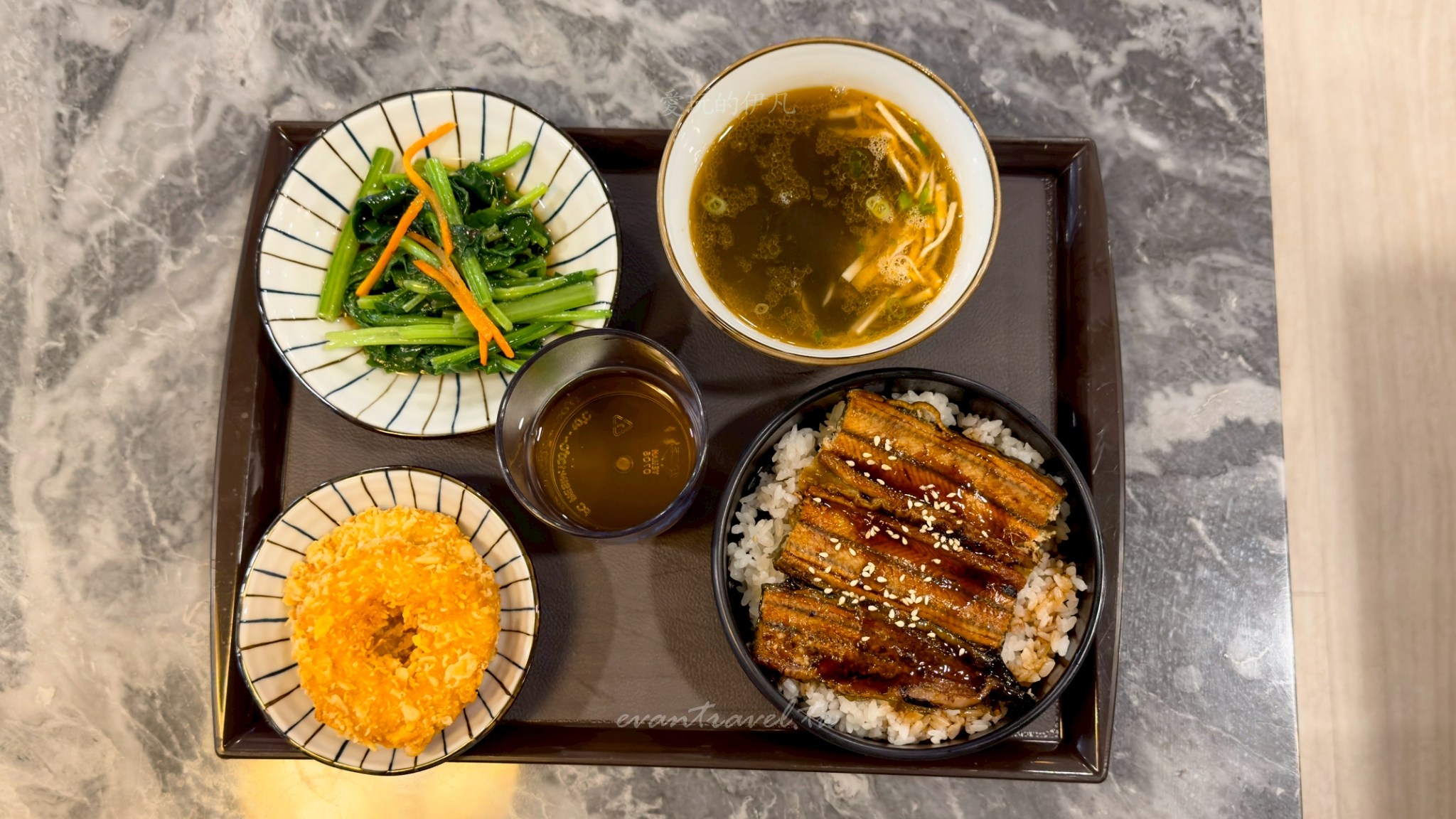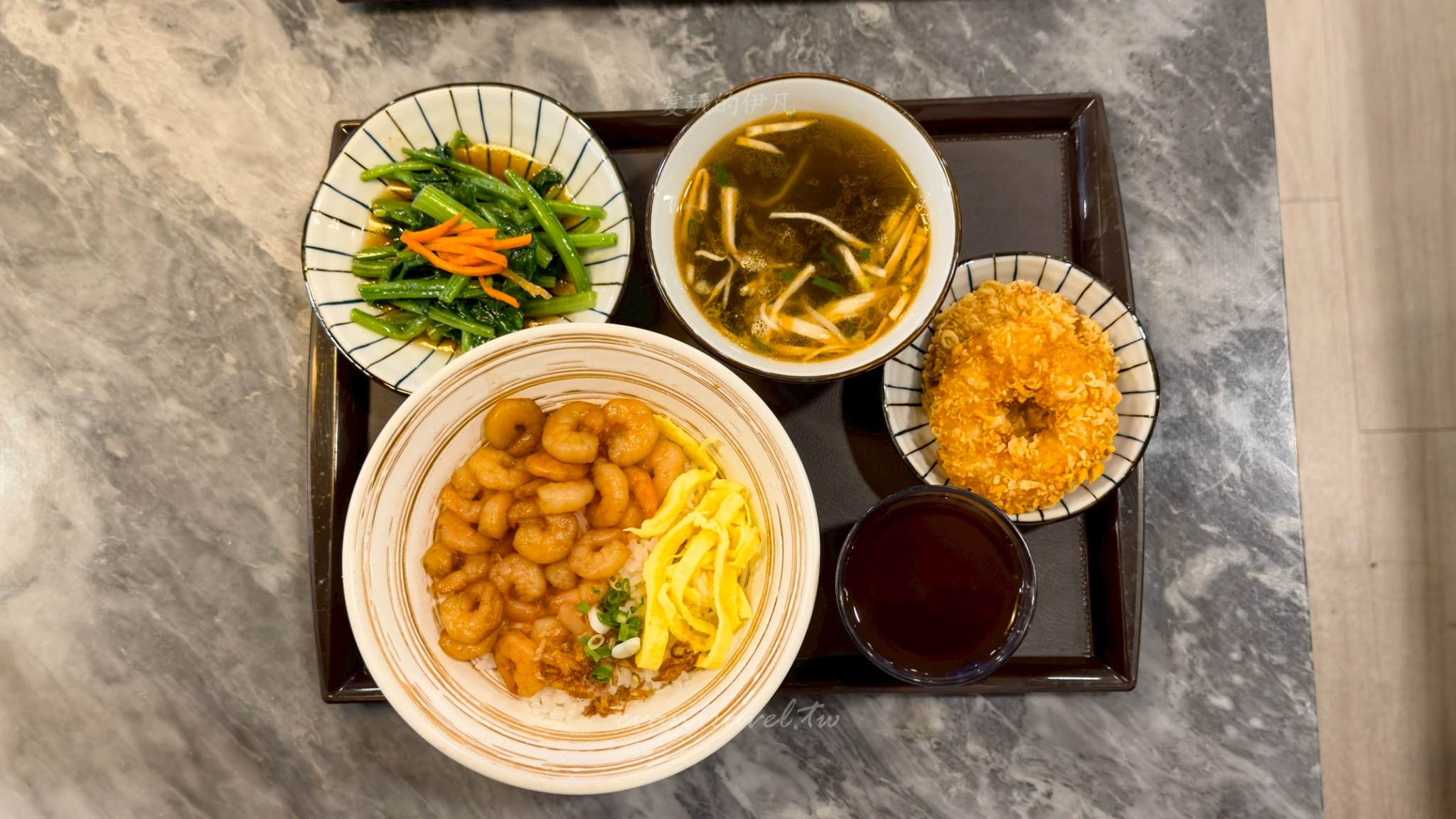 這次我們兩個人來用餐,分別點了「蝦仁飯套餐」和「蒲燒鱔魚飯套餐」。每份定食除了主餐外,都包含了: