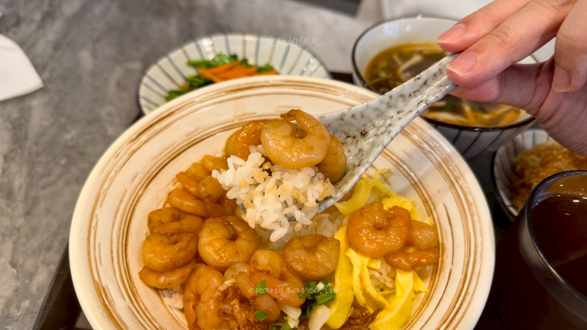 相較於蝦仁飯,這道「蒲燒鱔魚飯」就讓我驚艷許多! 鱔魚的厚度適中,蒲燒醬汁鹹甜濃郁,烤得非常入味。重點是這個醬汁跟白飯簡直是絕配,每一口飯都吸附了醬香,超級下飯!雖然價格比蝦仁飯多 $50 元,但整體的滿足感高出不少。如果你在猶豫要點什麼,我個人強烈推薦這道鱔魚定食!