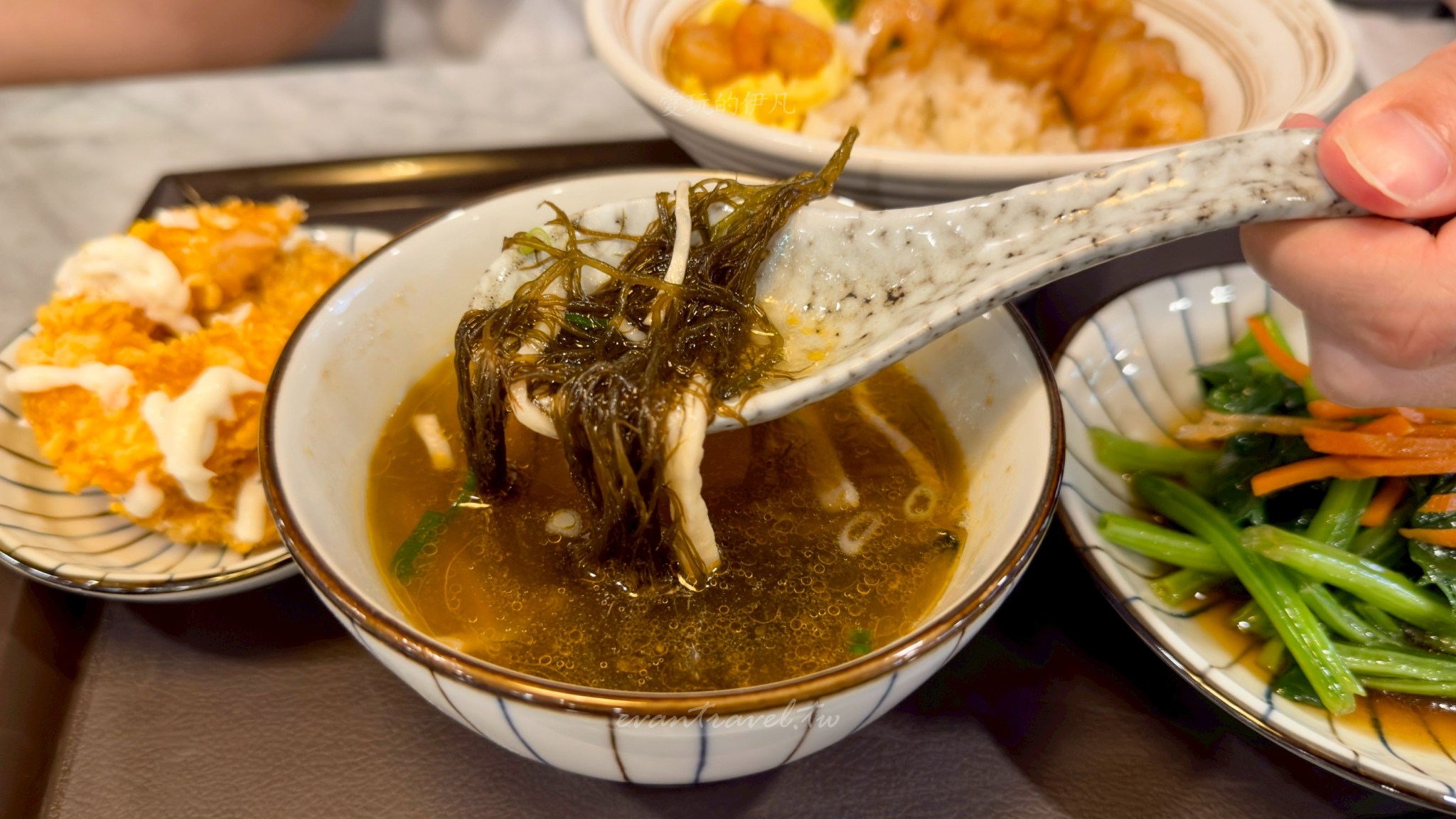 定食附的湯品料還算多,搭配炸物跟飯食一起吃,整份套餐吃下來非常有飽足感。