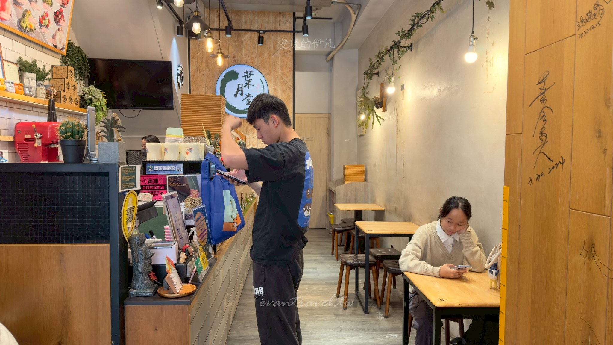 走進位於左營富民路上的葉月堂,首先映入眼簾的是其極具質感的裝潢風格。不同於傳統冰果室的吵雜與擁擠,富民店採用了帶有工業風與極簡主義的設計語彙。大面積的水泥質感牆面,搭配上溫暖的木質桌椅,營造出一種沉穩而放鬆的氛圍。牆面上或許會點綴著一些乾燥花或綠色植栽意象的裝飾,讓剛硬的工業風中多了一絲自然的溫柔。