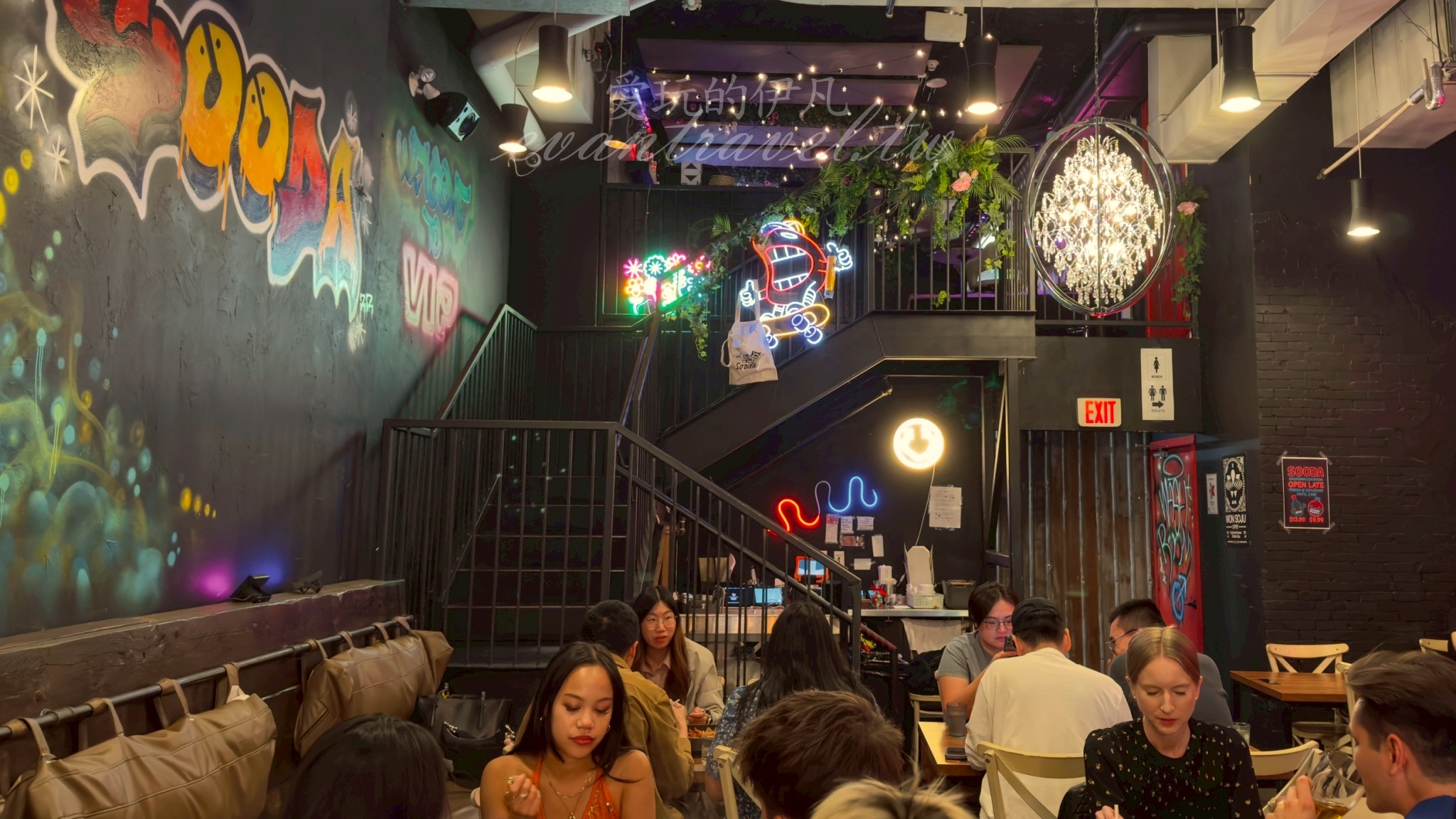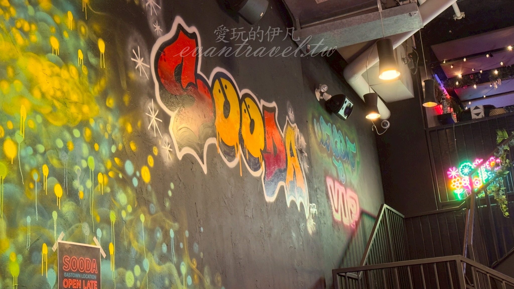 Sooda 坐落在具有歷史韻味的 Gastown 一角,採用富烈街頭藝術風格的裝潢,融合霓虹燈、漫畫拼貼牆面與開放式吧台。