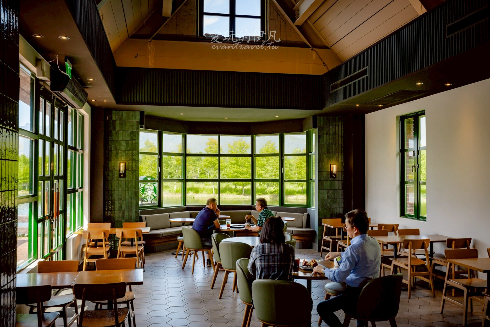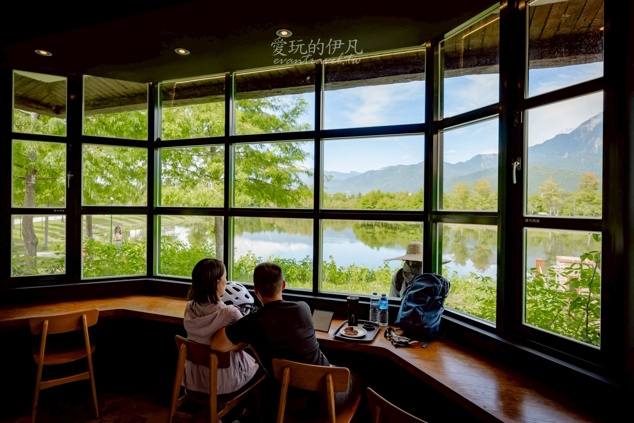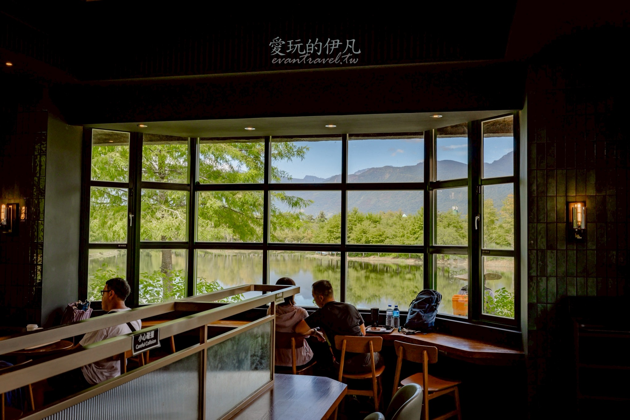 大面窗設計讓自然光大量引入,也讓湖景、落羽松、藍天白雲成為視覺主角;不少座位直接面對湖面,是搶手的景觀位。