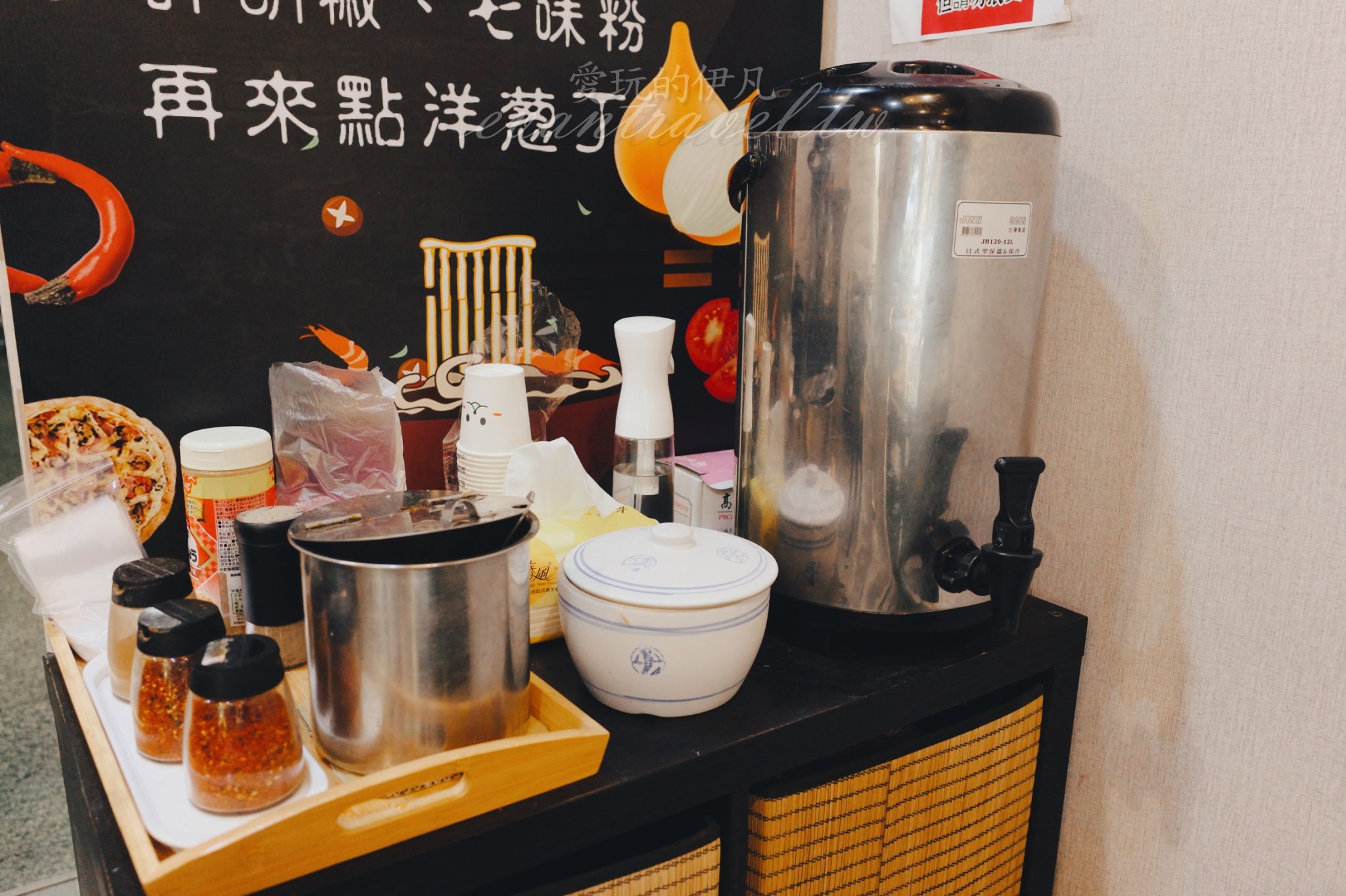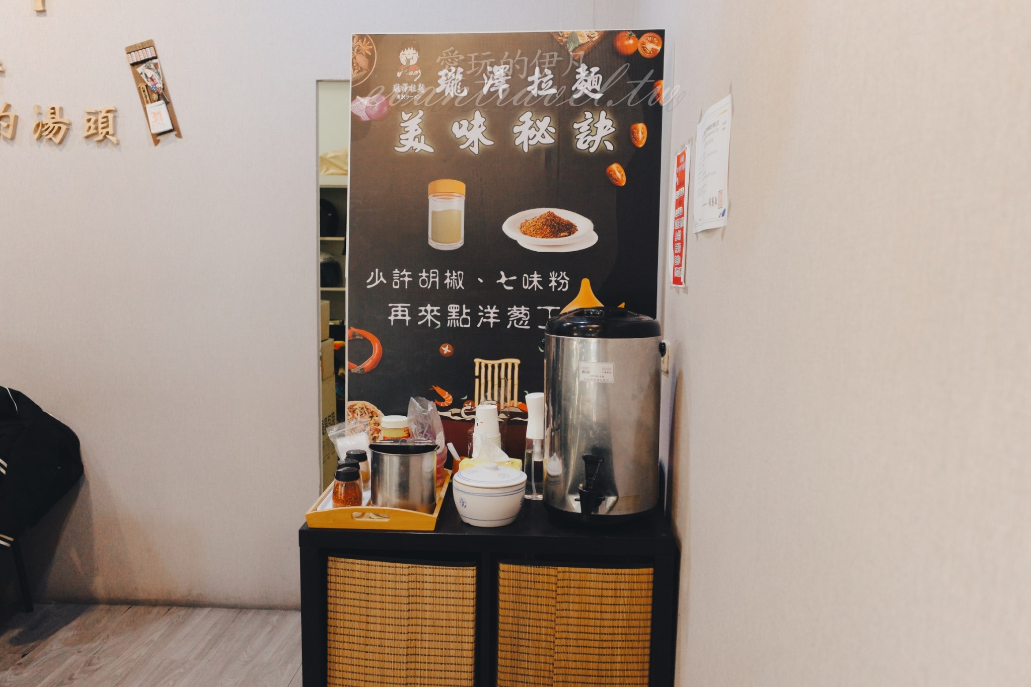 而我最推崇的細節,莫過於他們的自助服務區。除了基本的冰水與餐具外,店家還貼心地準備了「美味秘訣」告示牌,並提供免費的鮮切洋蔥丁。這點真的非常專業!洋蔥的辛甜能瞬間解掉豚骨的厚重感,讓湯頭在後半段展現出完全不同的層次。自助區還有胡椒與七味粉供調整口味,維持得一塵不染,這種對小細節的嚴謹,正是職人精神的具現化。