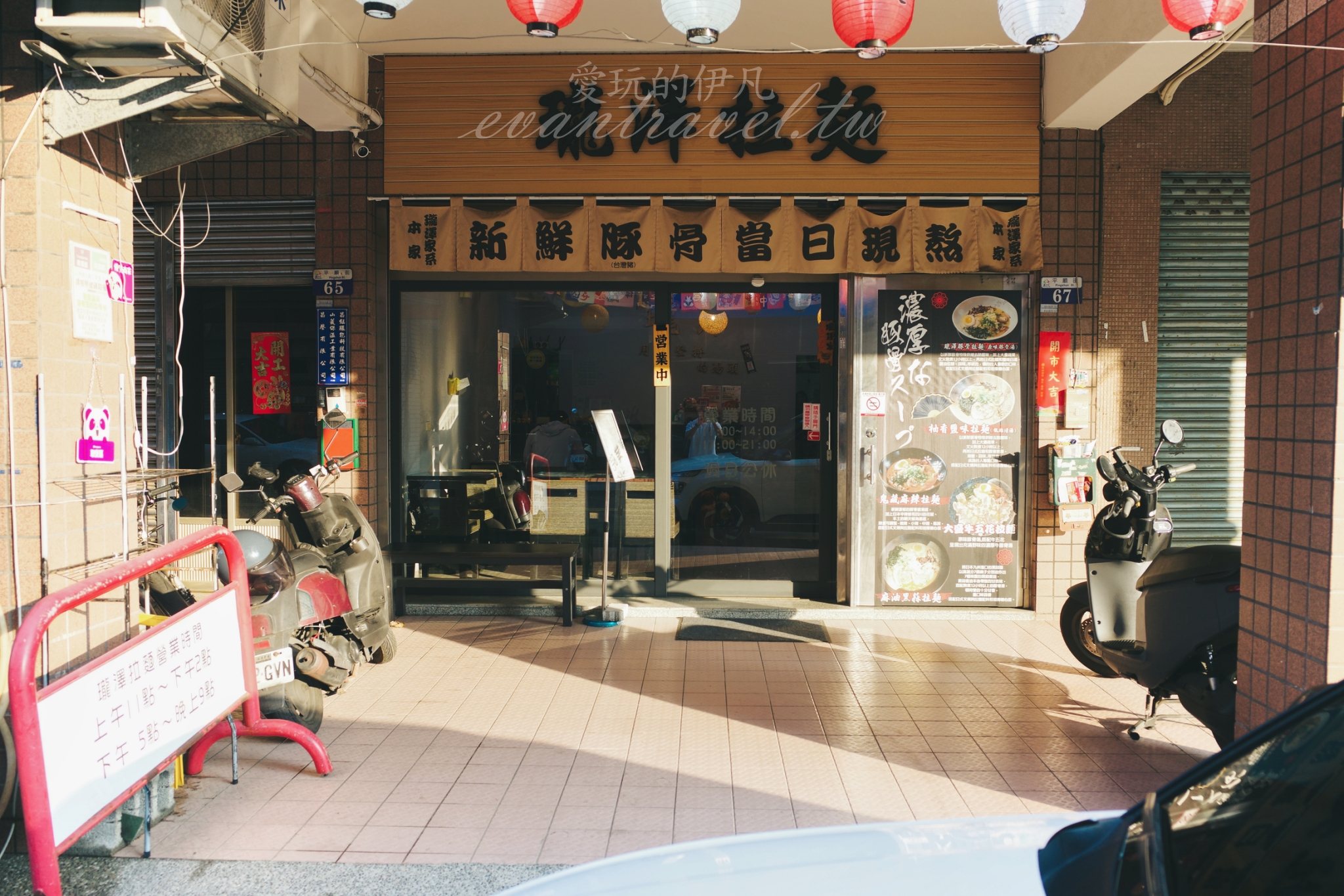 瓏澤拉麵給人的第一印象是親切且充滿溫度的。門口的燈籠隨風輕晃,橫幅上寫著「新鮮豚骨當日現熬」,這種直球對決的宣告,顯示了店家對自家產品的自信。