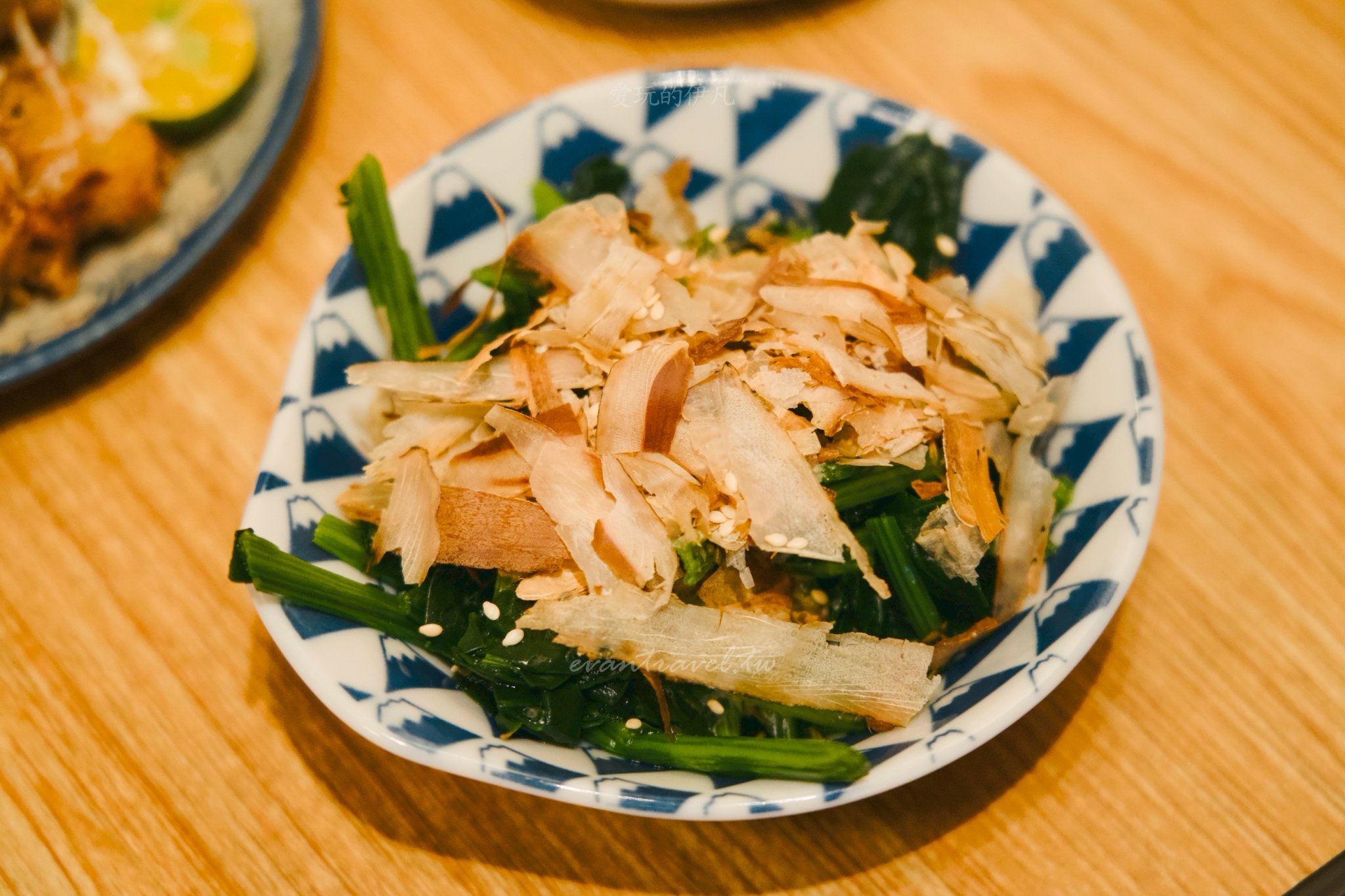 鋪上滿滿的柴魚片,清爽且開胃,適合用來平衡炸物的油膩感。
